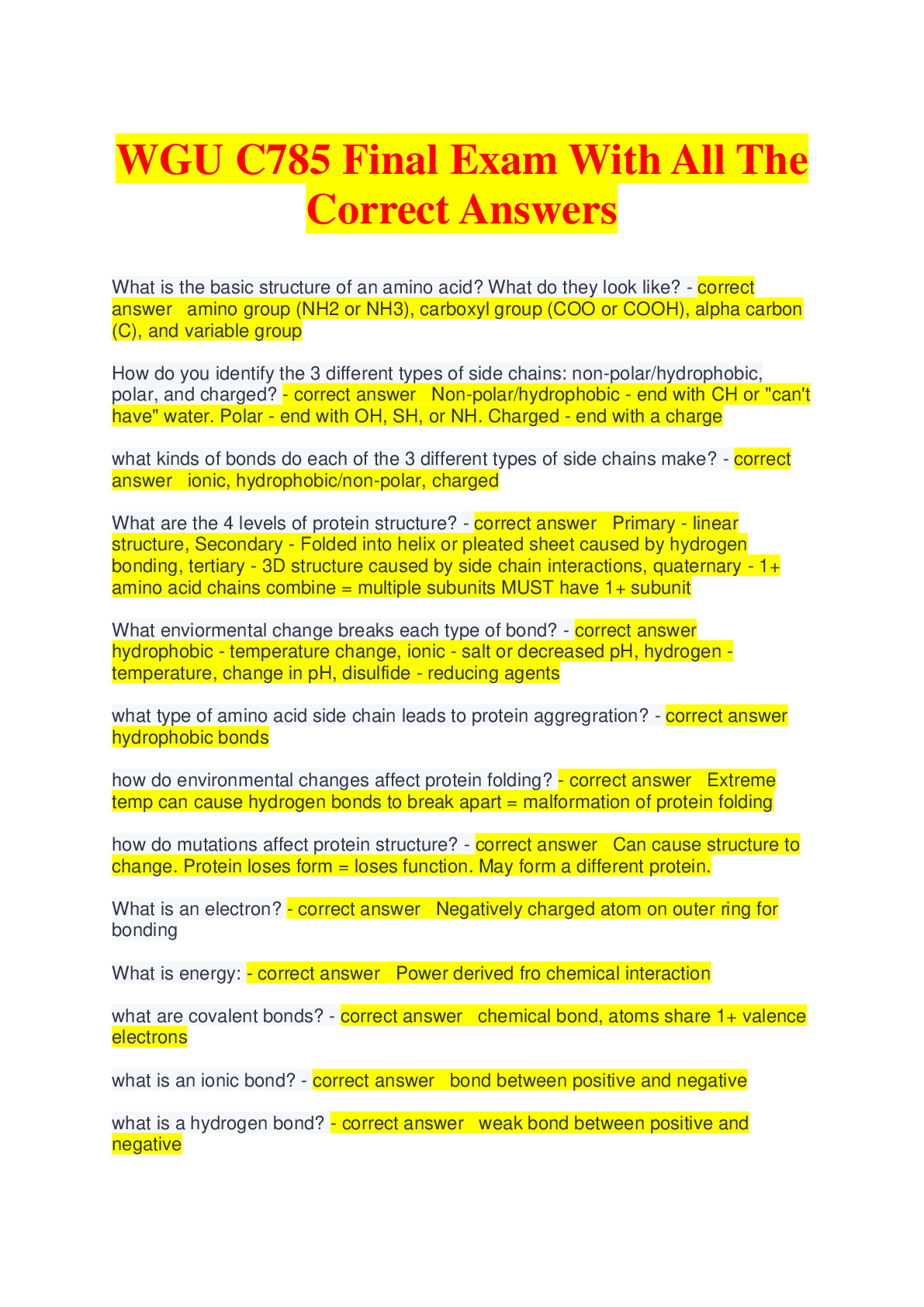 BioChemistry > EXAMs > BioChem C785 - WGU - Module 1 - all questions and Answers (100% Verified) (All)