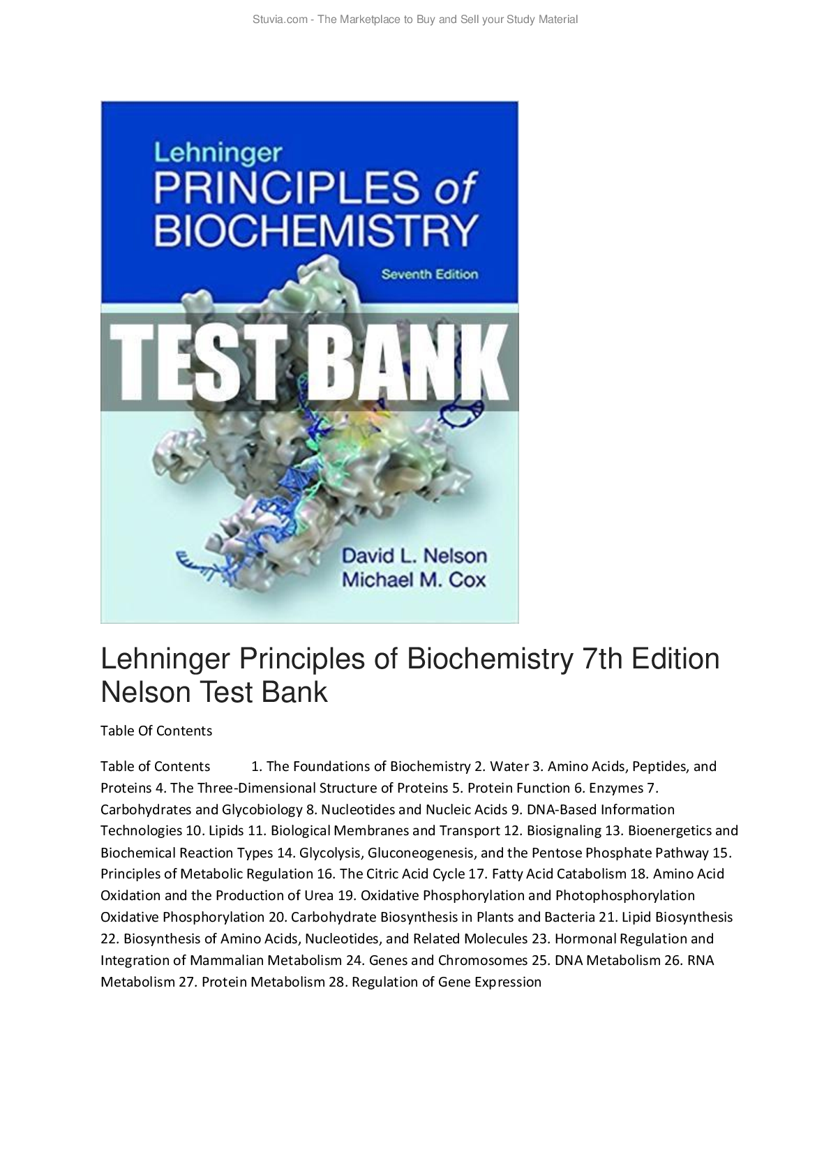 BioChemistry > TEST BANKS > Test_Bank_for_Lehninger_Principles_of_Biochemistry_7th_Edition_by (All)