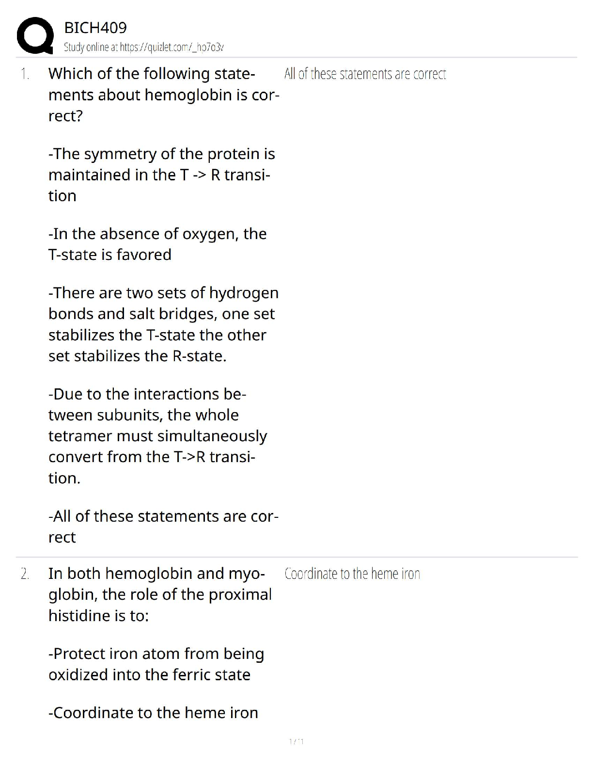 BioChemistry > QUESTIONS & ANSWERS > BICH 410 Exam 3 / Test Bank / Practice Questions / Study Guide / Score 100% – 2025 New Version (All)