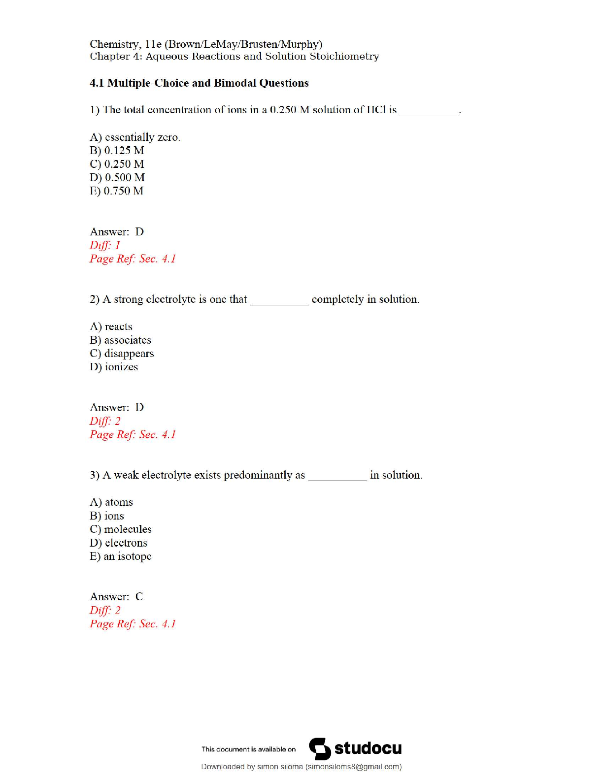 BioChemistry > QUESTIONS & ANSWERS > Ch04 Test Bank / Chemistry Chapter 4 / 2025 Update / Score 100% (All)