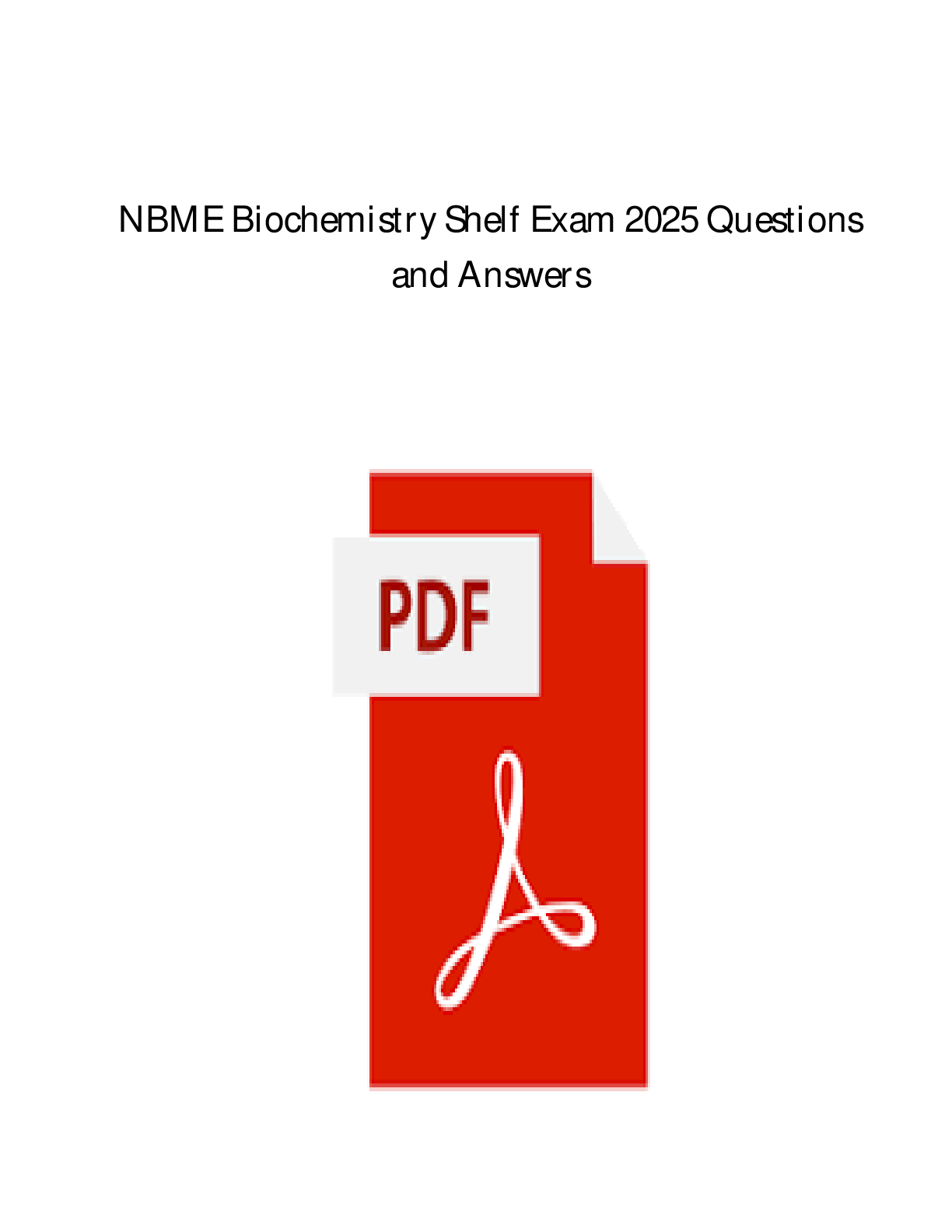 BioChemistry > EXAMs > NBME BIOCHEMISTRY SHELF EXAM (UPDATED 2025/2026) – QUESTIONS AND ANSWERS – VERIFIED & COMPLETE – INSTANT DOWNLOAD (All)