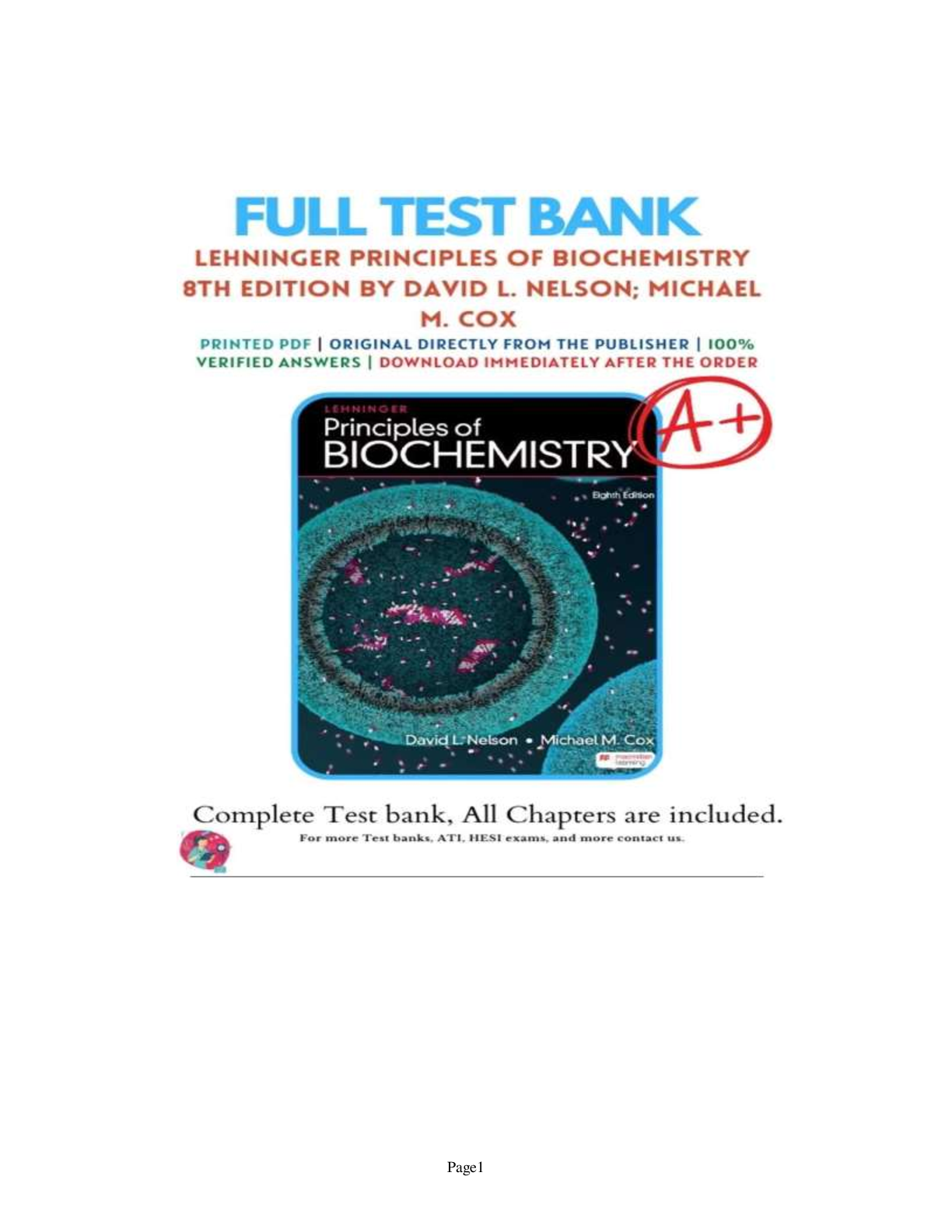 BioChemistry > TEST BANKS > Test Bank For Lehninger Principles Of Biochemistry 5th Edition By David L. Nelson (All)