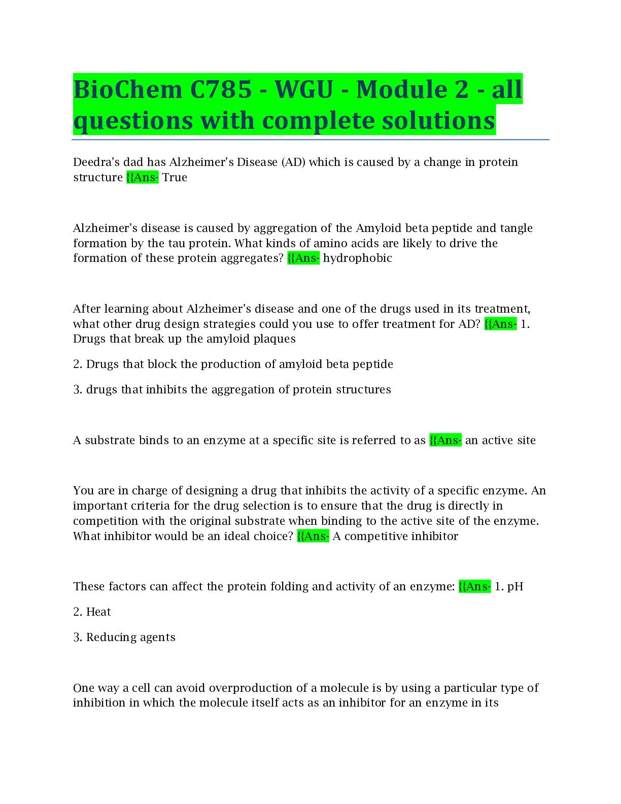 BioChemistry > QUESTIONS & ANSWERS > BioChem C785 - WGU - Module 2 - all questions and Answers with Verified Solutions (All)