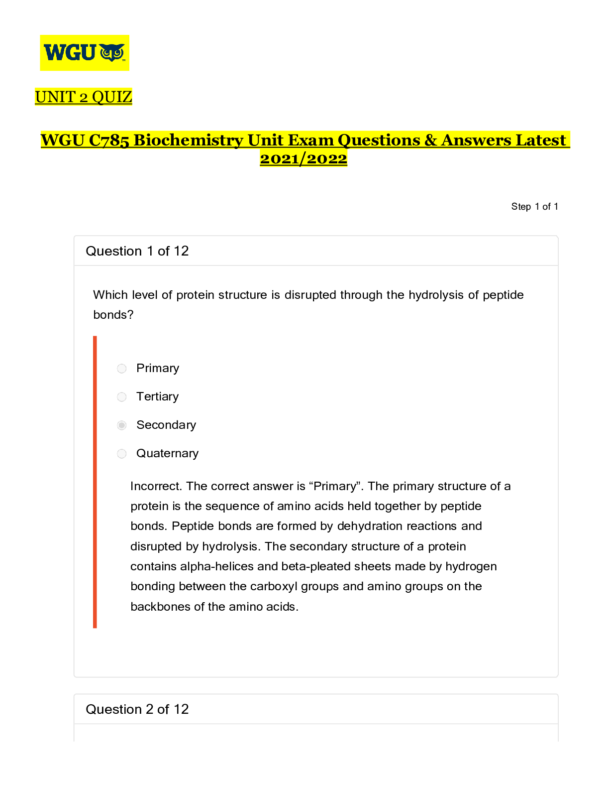 BioChemistry > QUESTIONS & ANSWERS > WGU C785 Biochemistry Unit Exam Questions & Answers Latest 2021/2022 (All)