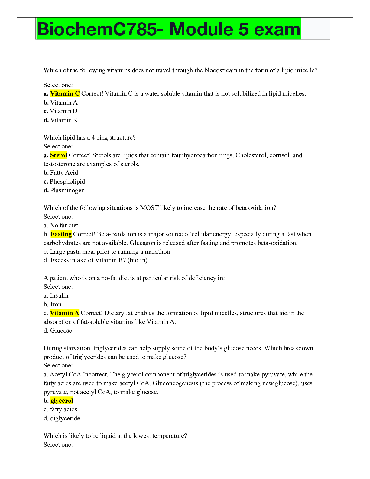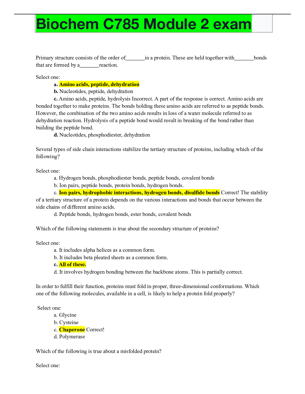 BioChemistry > EXAM > BioChem C785 module 2 Quizes With Complete Solutions #Verified (All)