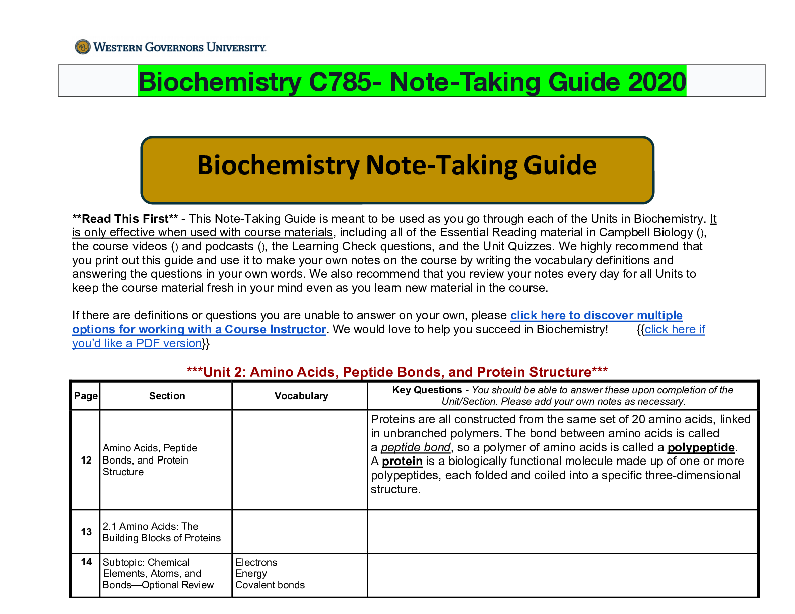 BioChemistry > EXAM > Biochemistry C785- Note-Taking Guide 2020 (All)