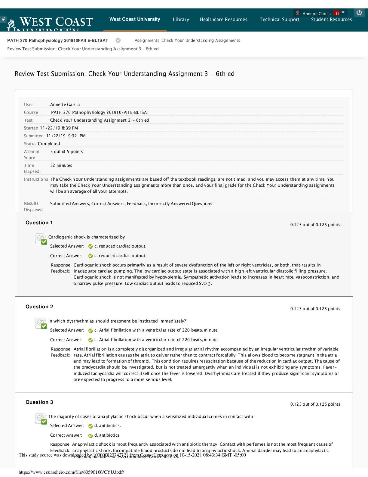 Pathophysiology > EXAM > PATH 370 Pathophysiology 201910FAII E-BL1SAT (All)