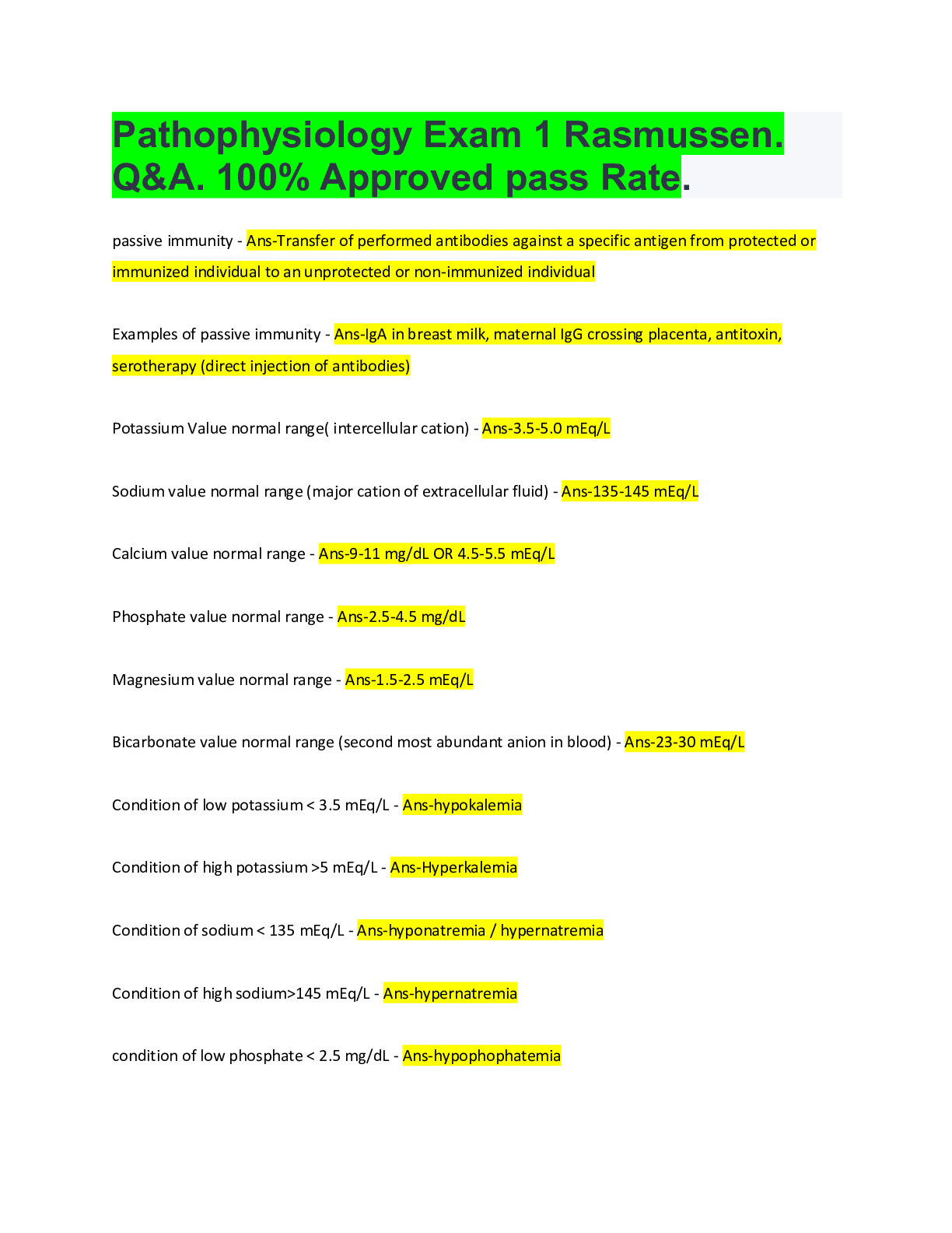 Pathophysiology > EXAM > NR 283/ NR283 Exam 3 (2026/ 2027 Update): Pathophysiology | Q/A | Grade A| 100% Correct - Chamberlain (All)