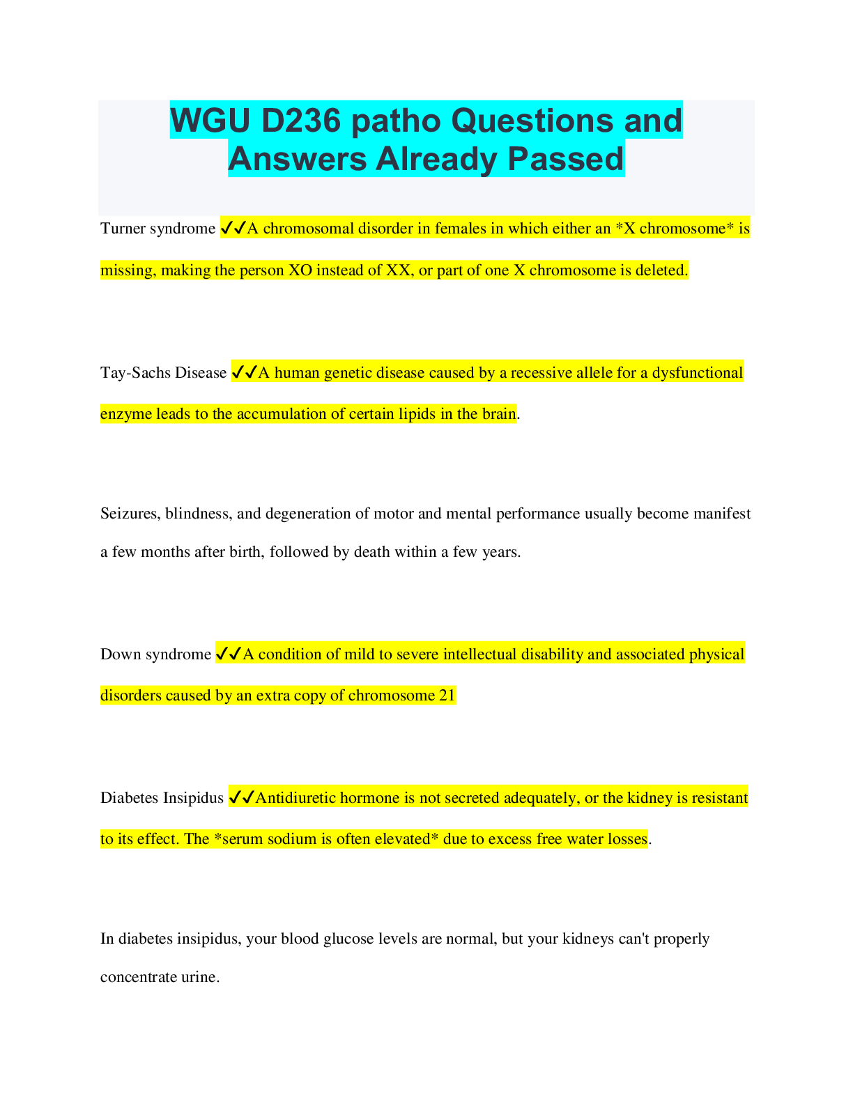 Pathophysiology > QUESTIONS & ANSWERS > WGU D236 patho Questions and Answers Already Passed (All)