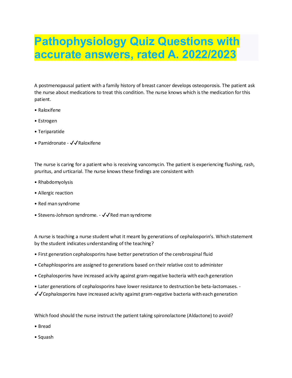Pathophysiology > QUESTIONS & ANSWERS > Pathophysiology Quiz Questions with accurate answers, rated A. 2022/2023 (All)