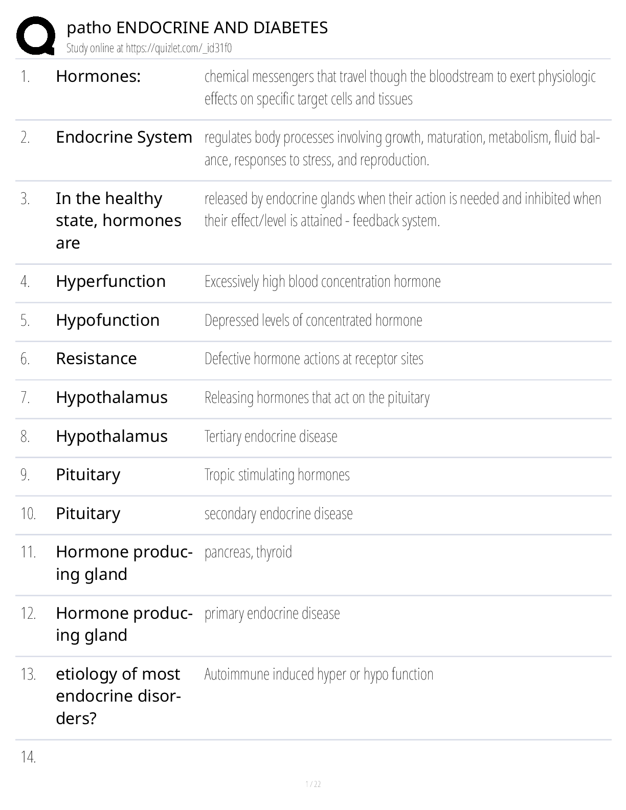 Pathophysiology > Study Notes > Patho – Endocrine & Diabetes Class Notes, Study Guide & Test Bank (Pathophysiology Exam Prep) (All)