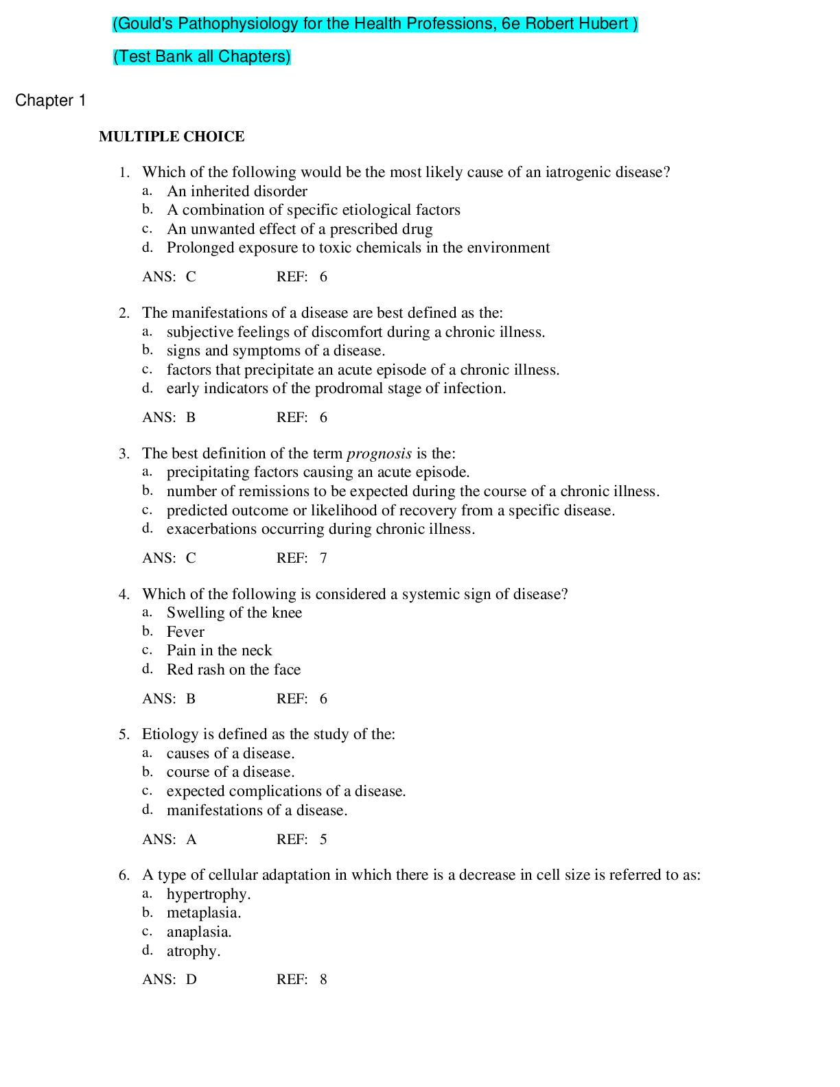 Pathophysiology > TEST BANKS > Gould's Pathophysiology for the Health Professions 7th Edition by Karin C. VanMeter & Robert J Hubert - Complete, Elaborated and Latest(Test Bank) (All)
