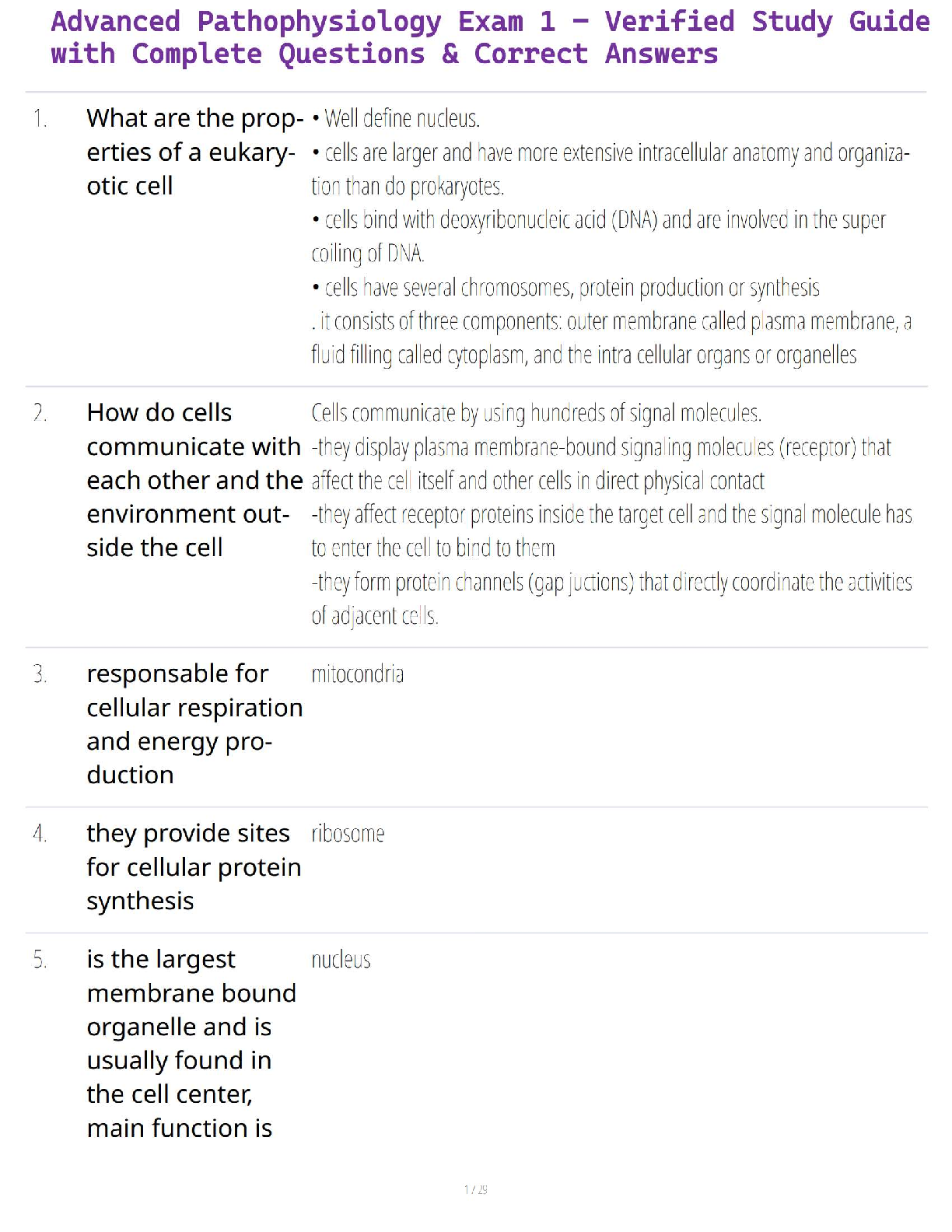 Pathophysiology > QUESTIONS and ANSWERS > Pathophysiology exam 1 QUESTIONS AND CORRECT ANSWERS | ANSWER KEY, RATIONALIZED | 100% VERIFIED COMPLETE EXAM SOLUTION | GRADE A+ | LATEST UPDATE!!! (All)