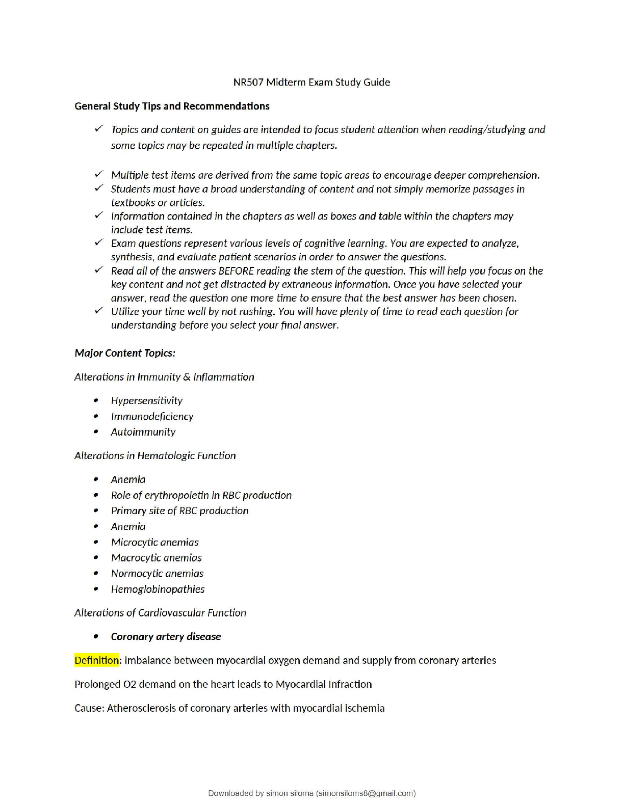 Pathophysiology > QUESTIONS & ANSWERS > NR 507 Midterm Exam Study Guide / Key Concepts & Strategies 2025 Update / Advanced Pathophysiology (All)