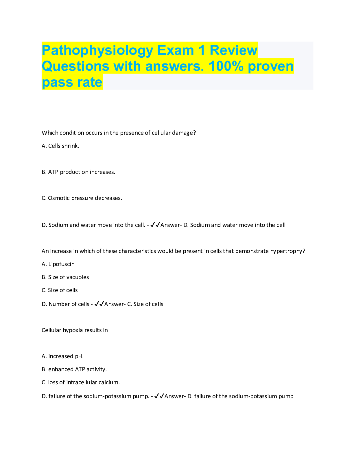 Pathophysiology > QUESTIONS & ANSWERS > Pathophysiology Exam 1 Review Questions with answers. 100% proven pass rate (All)