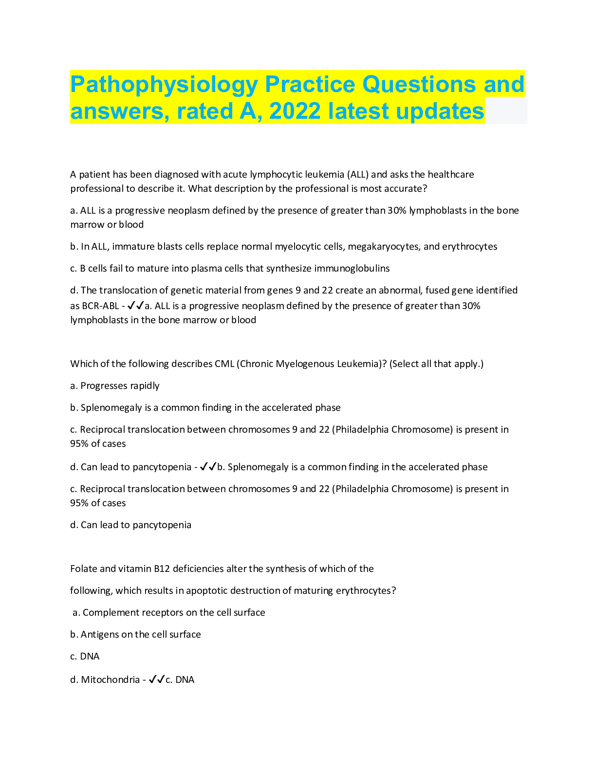 Pathophysiology > QUESTIONS & ANSWERS > Pathophysiology Practice Questions and answers, rated A, 2022 latest updates (All)
