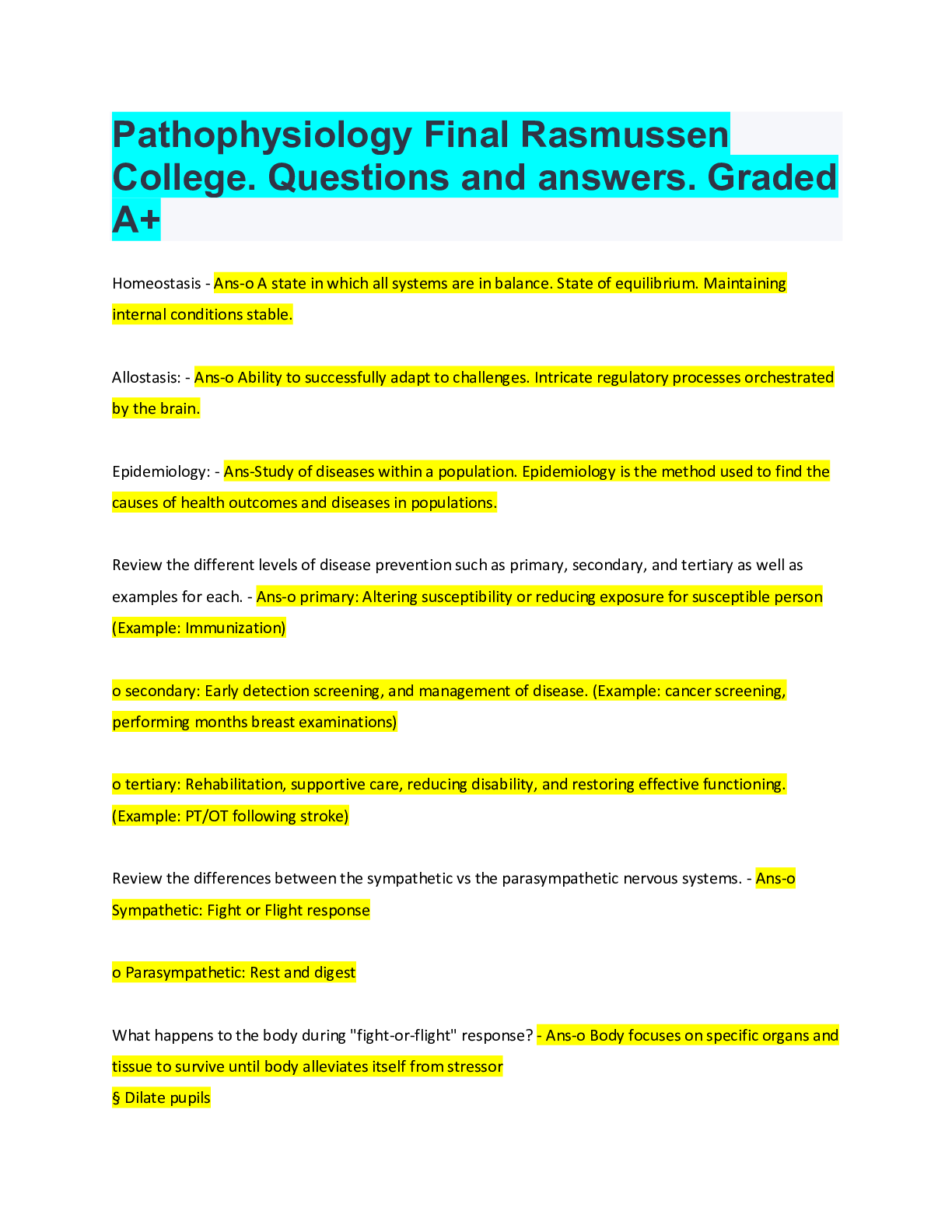 Pathophysiology > QUESTIONS & ANSWERS > Pathophysiology Exam 1 Rasmussen. Q&A. 100% Approved pass Rate (All)