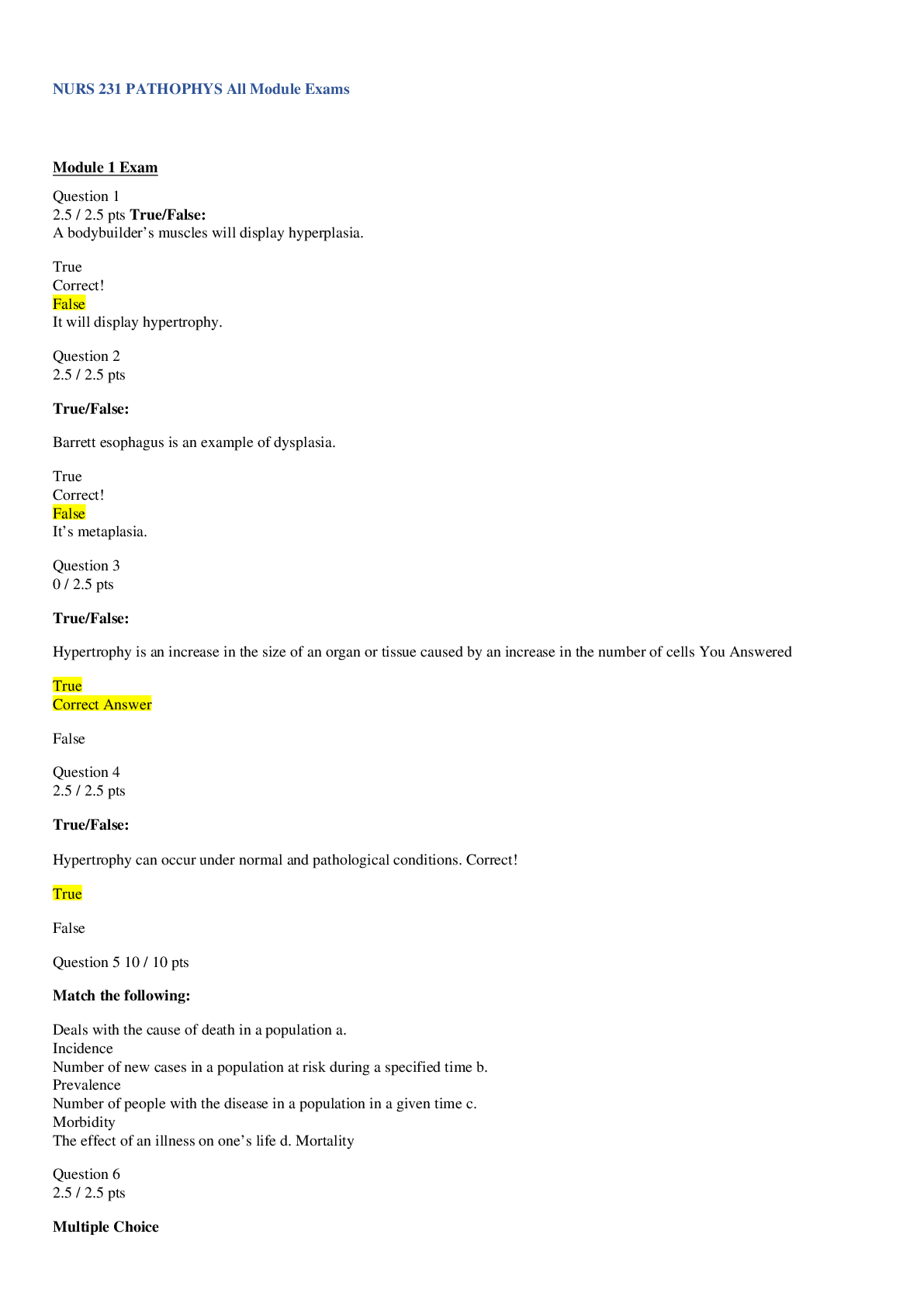Pathophysiology > EXAMs > NURS 231 PATHOPHYS All Module Exams (All)