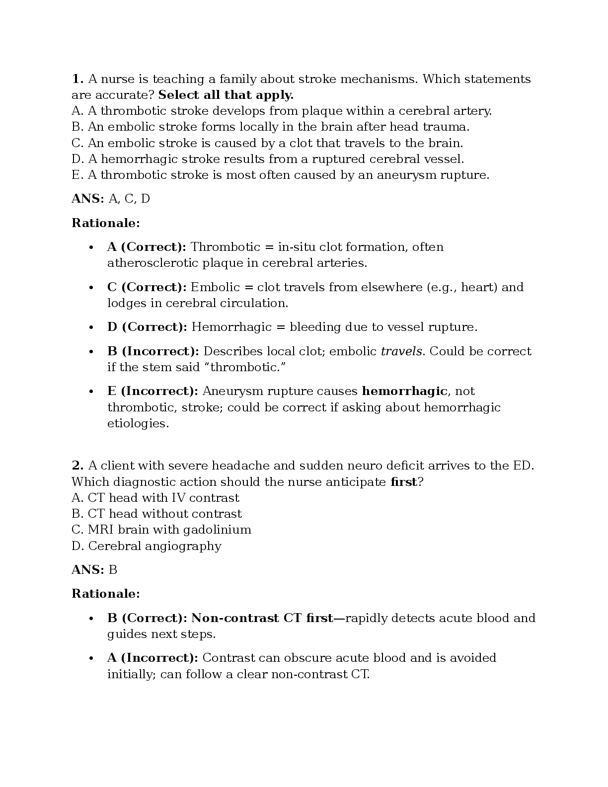 Pathophysiology > EXAM > NSG 3280 Exam 3 Practice | Answered with Rationales | Galen College of Nursing (All)