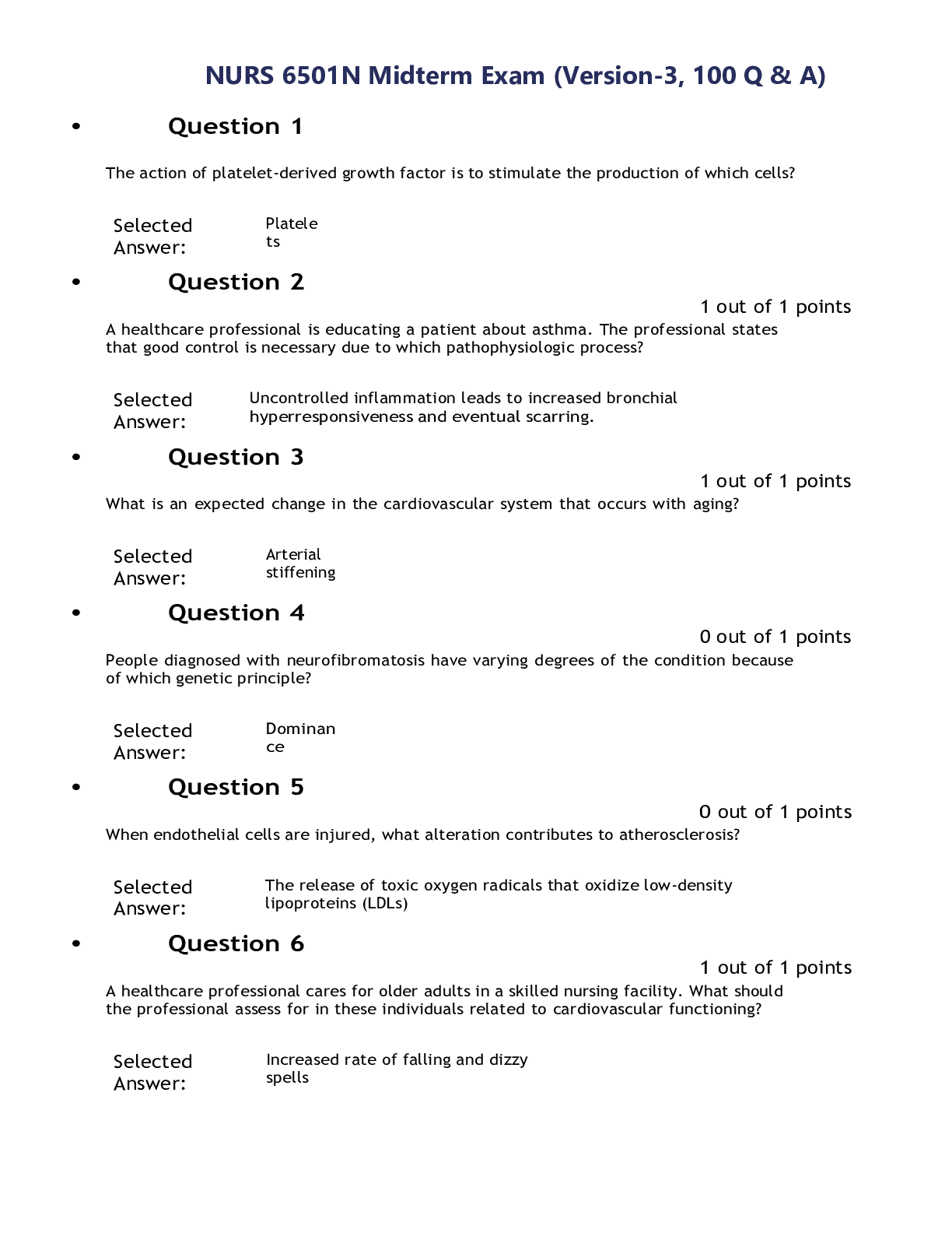 Pathophysiology > EXAM > NURS 6501N Midterm Exam (Version-3, 100 Q & A)advanced pathophysiology (All)
