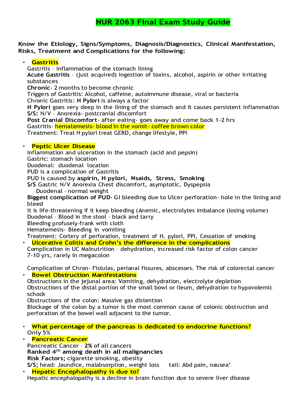 Pathophysiology > STUDY GUIDE > NUR 2063 Final Exam Study Guide (All)