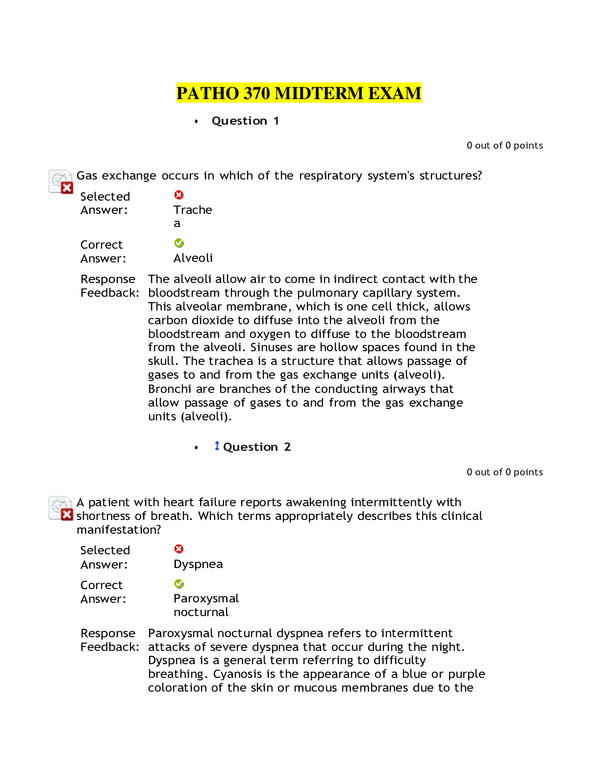 Pathophysiology > EXAM > PATHO 370 MIDTERM EXAM - Questions, Answers and Response Feedback (All)