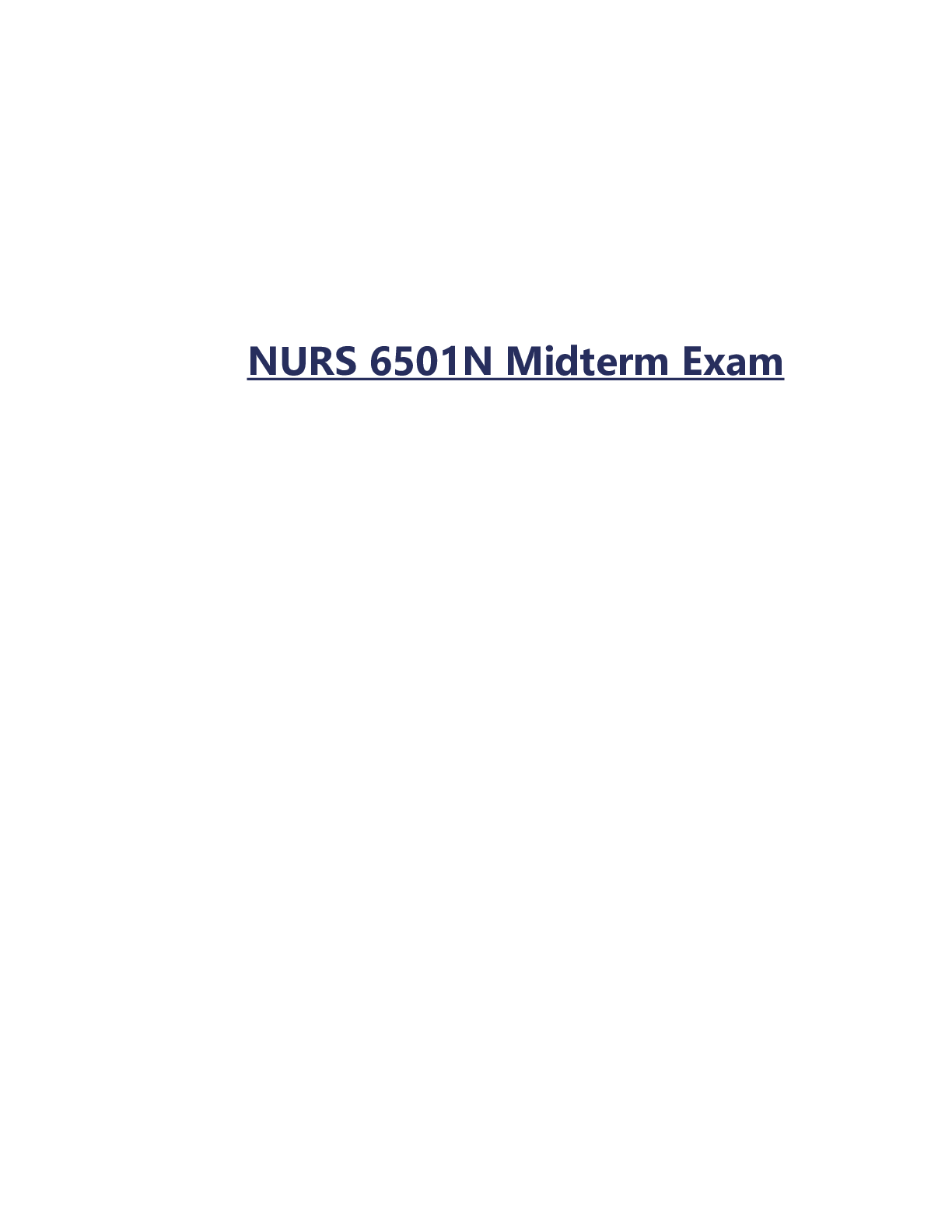 Pathophysiology > EXAM > NURS 6501N Midterm Exam advanced pathopsychology (All)