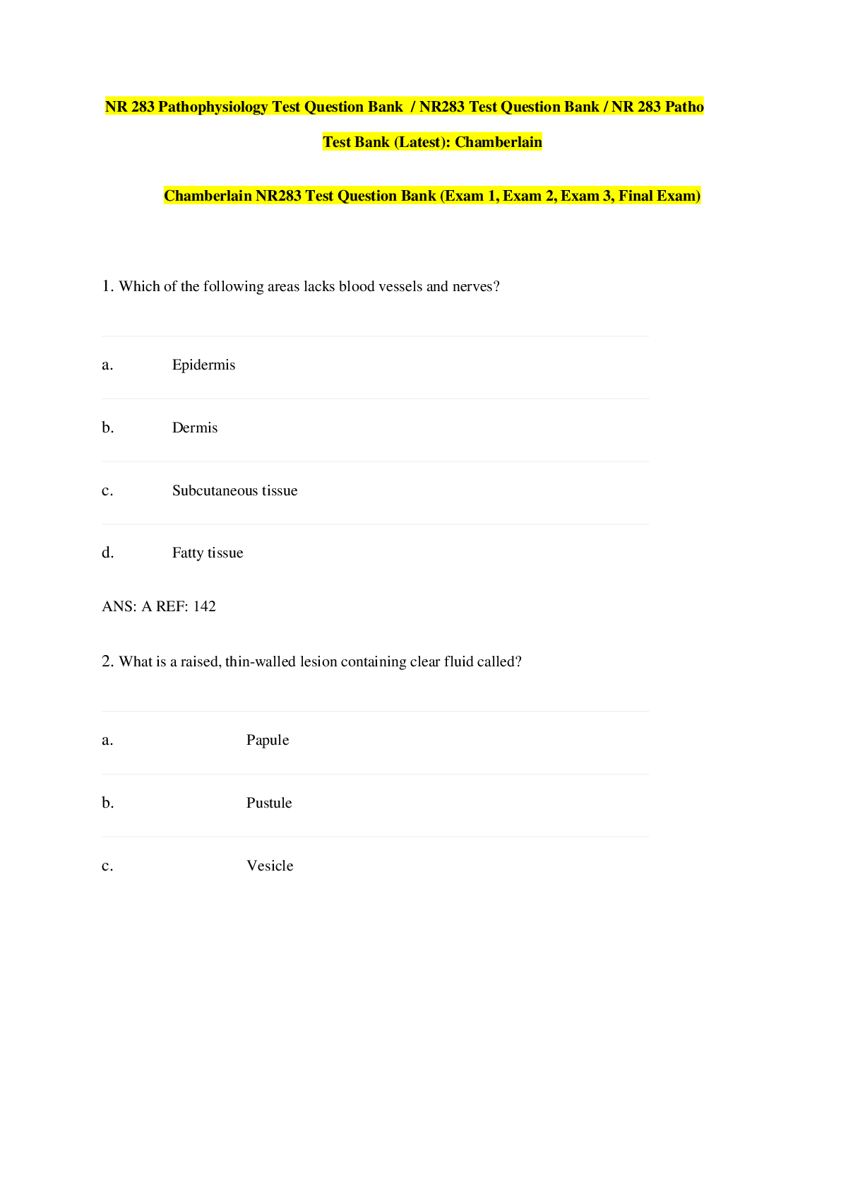 Pathophysiology > QUESTIONS & ANSWERS > NR283 Patho Test Question Bank (Exam 1, Exam 2, Exam 3, Final Exam) 2022/2023 (All)