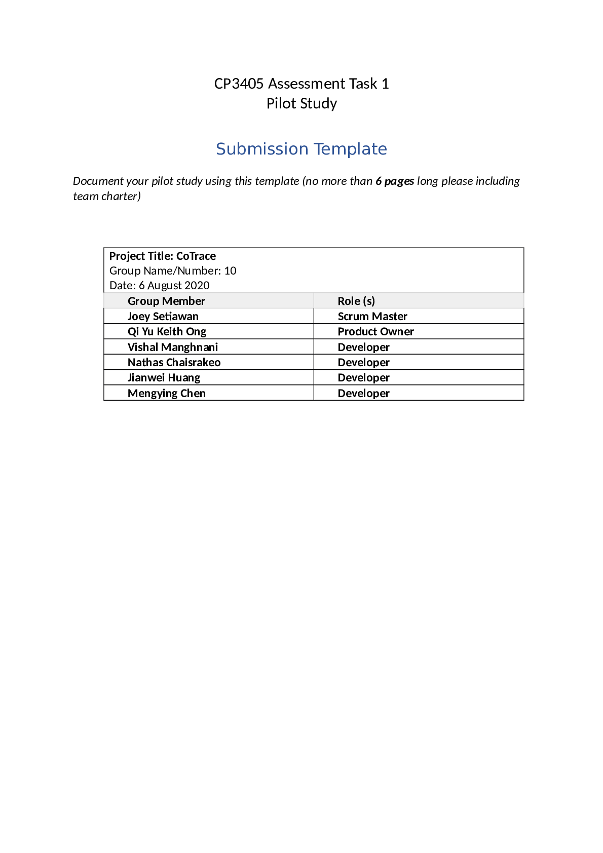 Information Technology > STUDY GUIDE > CP3405 Assessment Task 1 Pilot Study Submission Template (All)