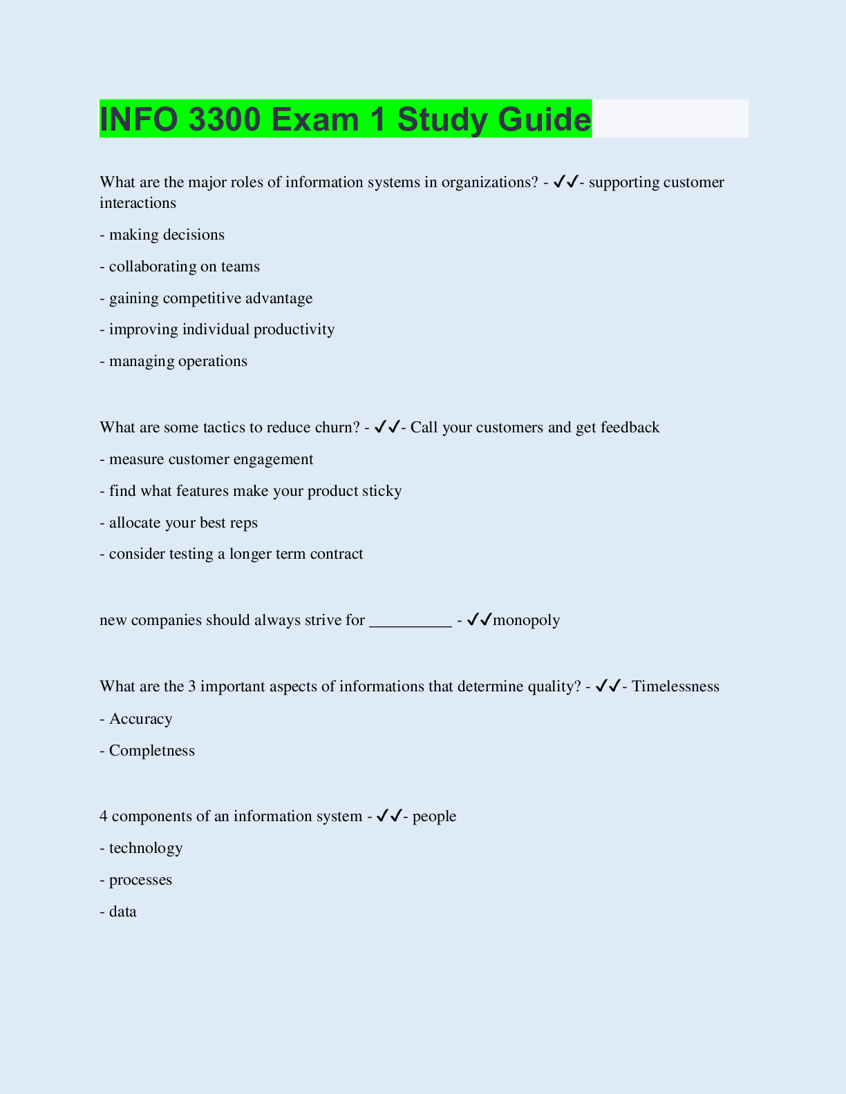 Information Technology > STUDY GUIDE > INFO 3300 Exam 1 Study Guide | with 100% Correct Answers | Updated & Verified (All)