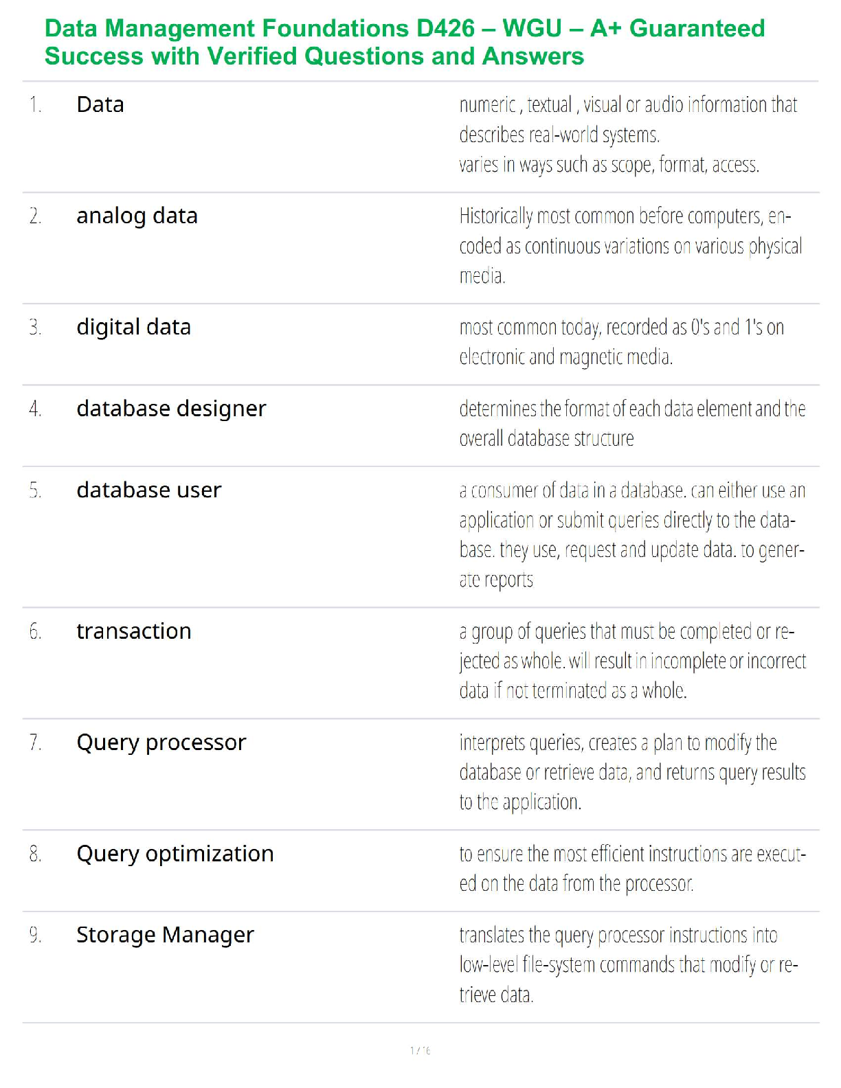 Information Technology > STUDY GUIDE > Data Management Foundations D426 – WGU – A+ Guaranteed Success with Verified Questions and Answers (All)