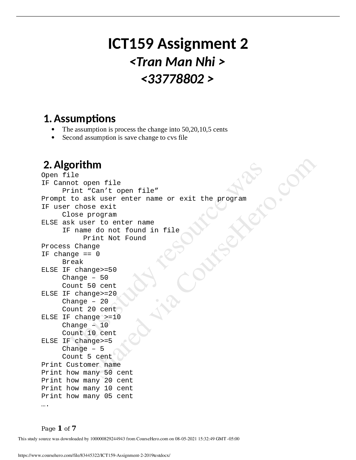 Information Technology > Research Paper > Murdoch UniversityICT 159ICT159 Assignment 2 2019test (All)