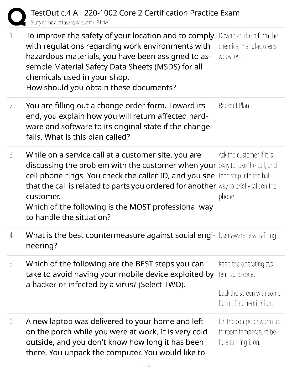 Information Technology > QUESTIONS and ANSWERS > TestOut 4.4 A+ 220-1002 Core 2 / 2024 Practice Exam / Simulation-Based Questions / Pass Guaranteed (All)
