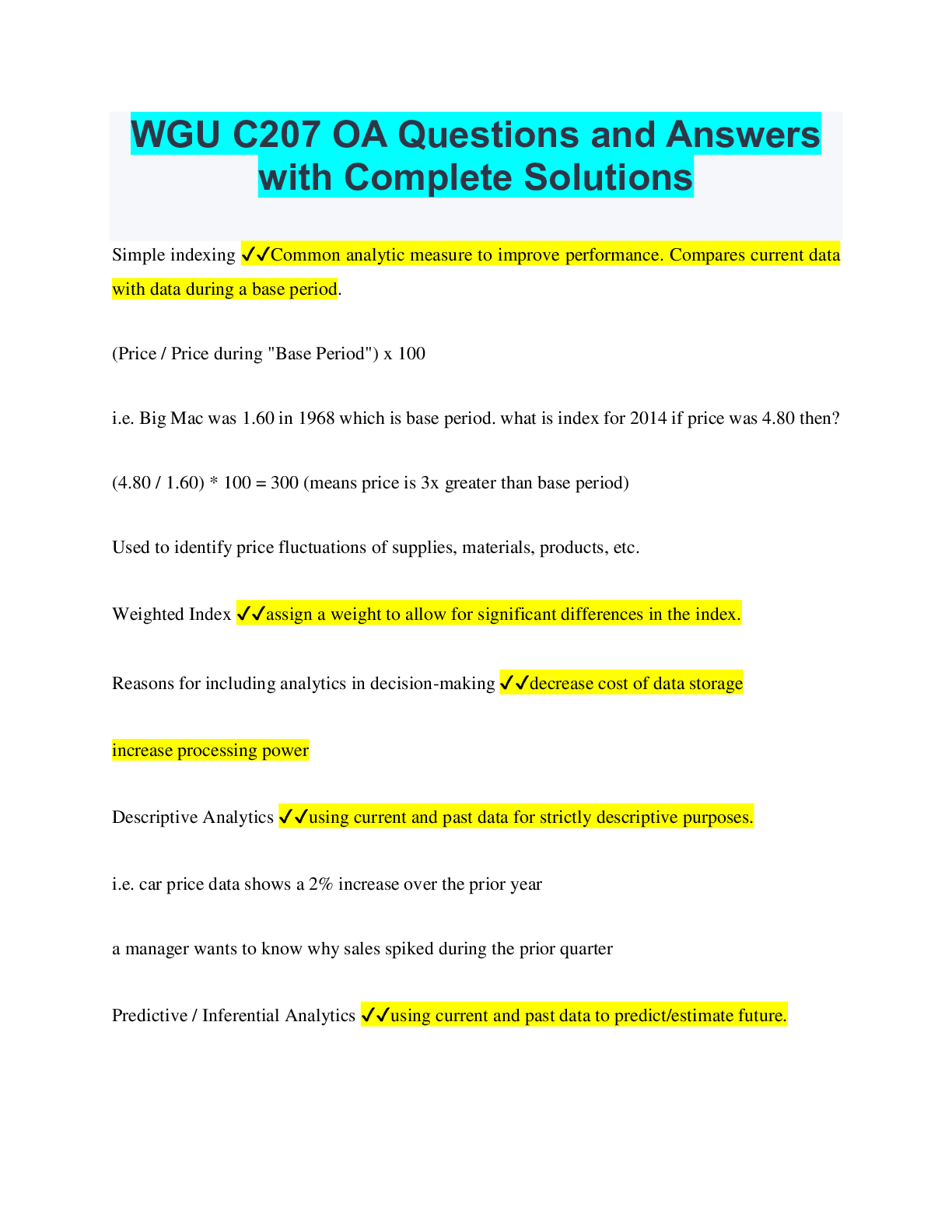 Information Technology > QUESTIONS & ANSWERS > WGU C207 OA Questions and Answers with Complete Solutions (All)