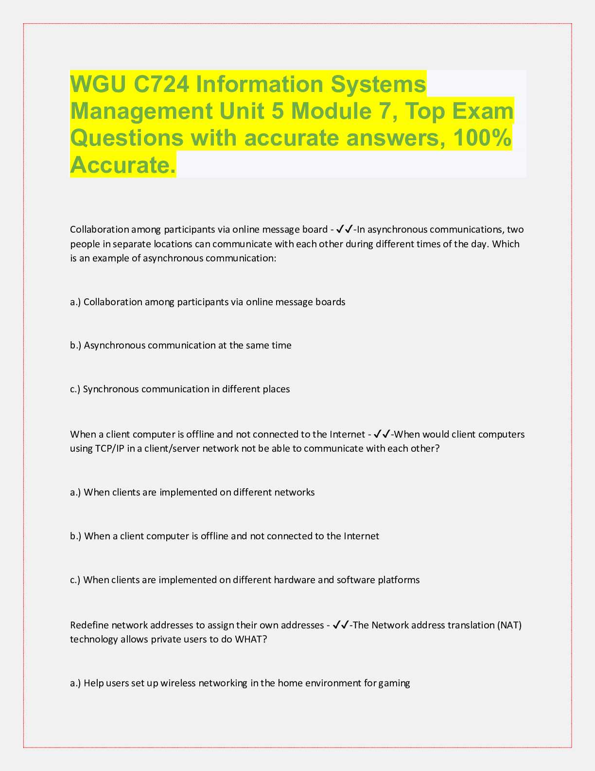 Information Technology > QUESTIONS & ANSWERS > WGU C724 Information Systems Management Unit 5 Module 7, Top Exam Questions with accurate answers, 100% Accurate. (All)