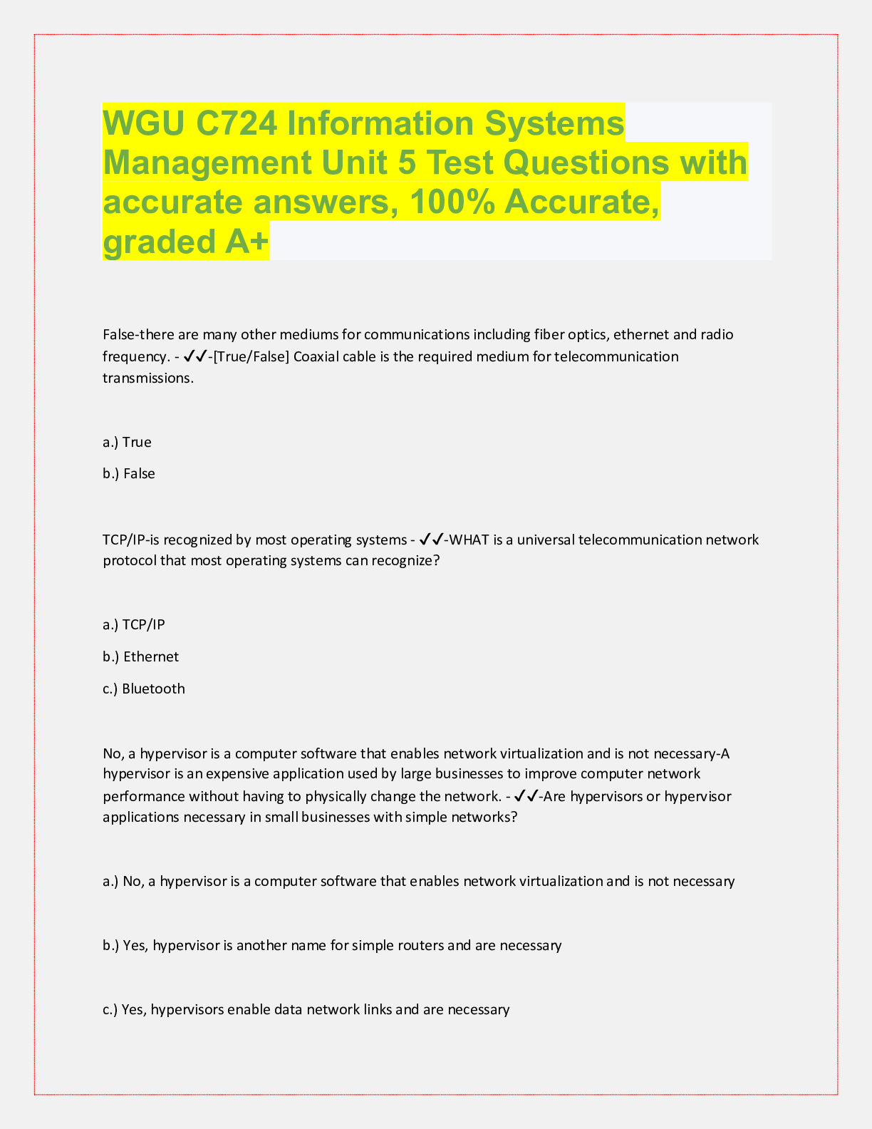 Information Technology > QUESTIONS & ANSWERS > WGU C724 Information Systems Management Unit 8 Test Questions and answers, 100% Accurate, graded A+ (All)