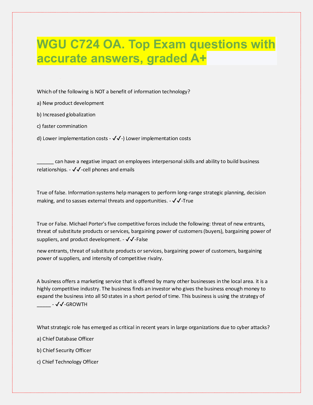 Information Technology > QUESTIONS & ANSWERS > WGU - Information Systems Management C724. Top Exam Questions with accurate answers, 100% Accurate, graded A+ (All)