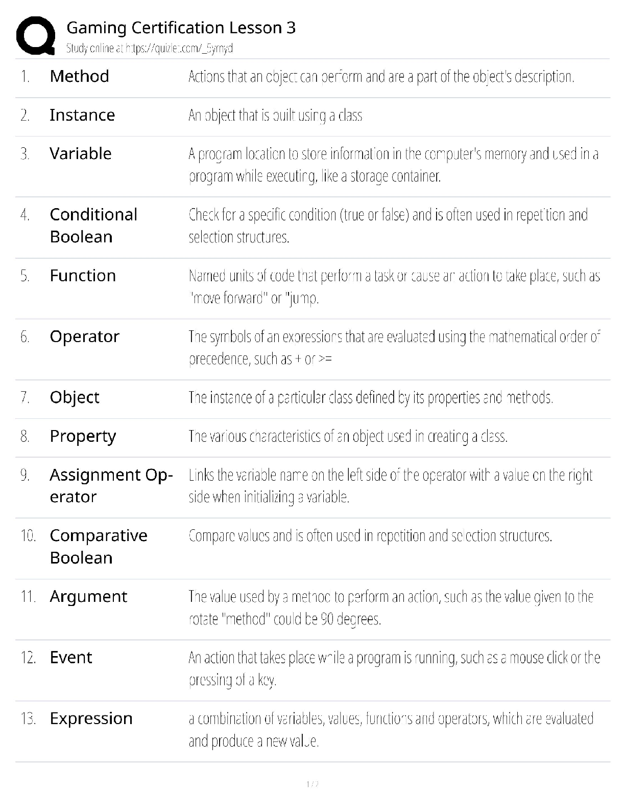 Information Technology > QUESTIONS & ANSWERS > Gaming Certification Lesson 3 / 2025 Exam Prep / [Esports/Game Dev/Casino] Specialist Training / Pass Guarantee (All)