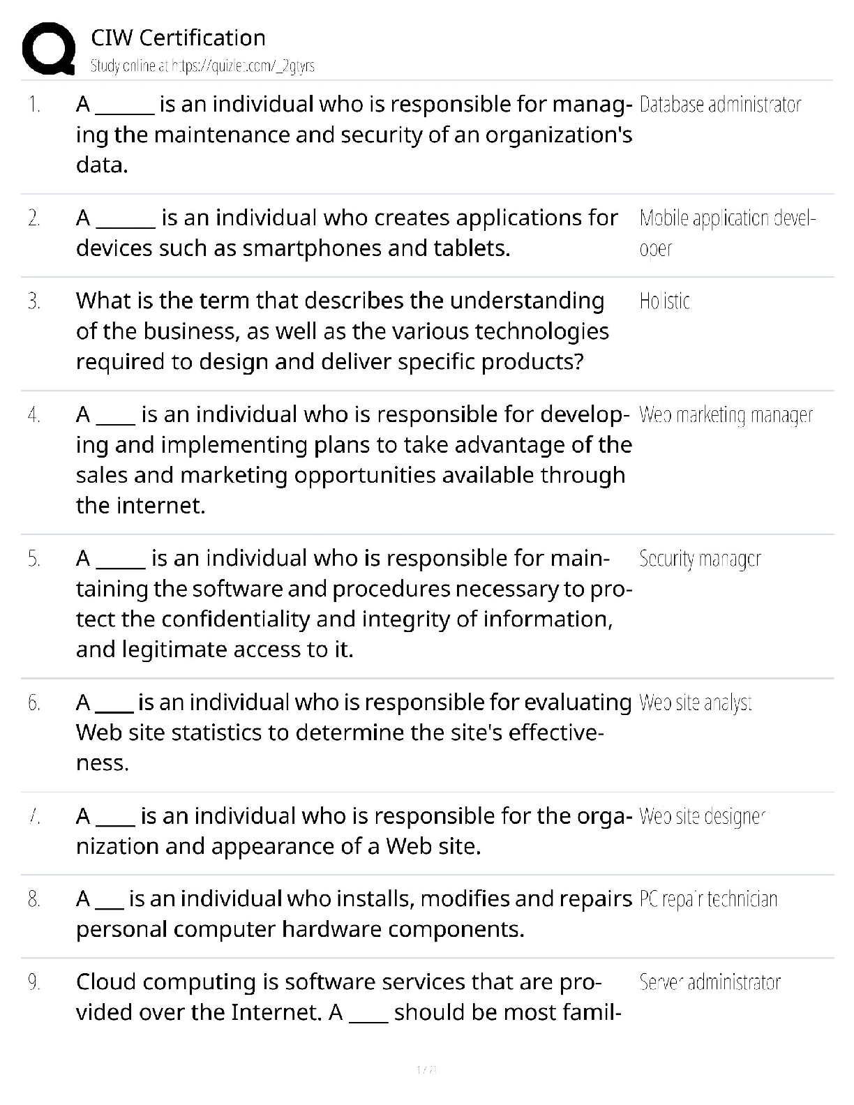 Information Technology > QUESTIONS & ANSWERS > CIW Certification / 2025 Exam Prep / New Version / Score 100% Guide (All)