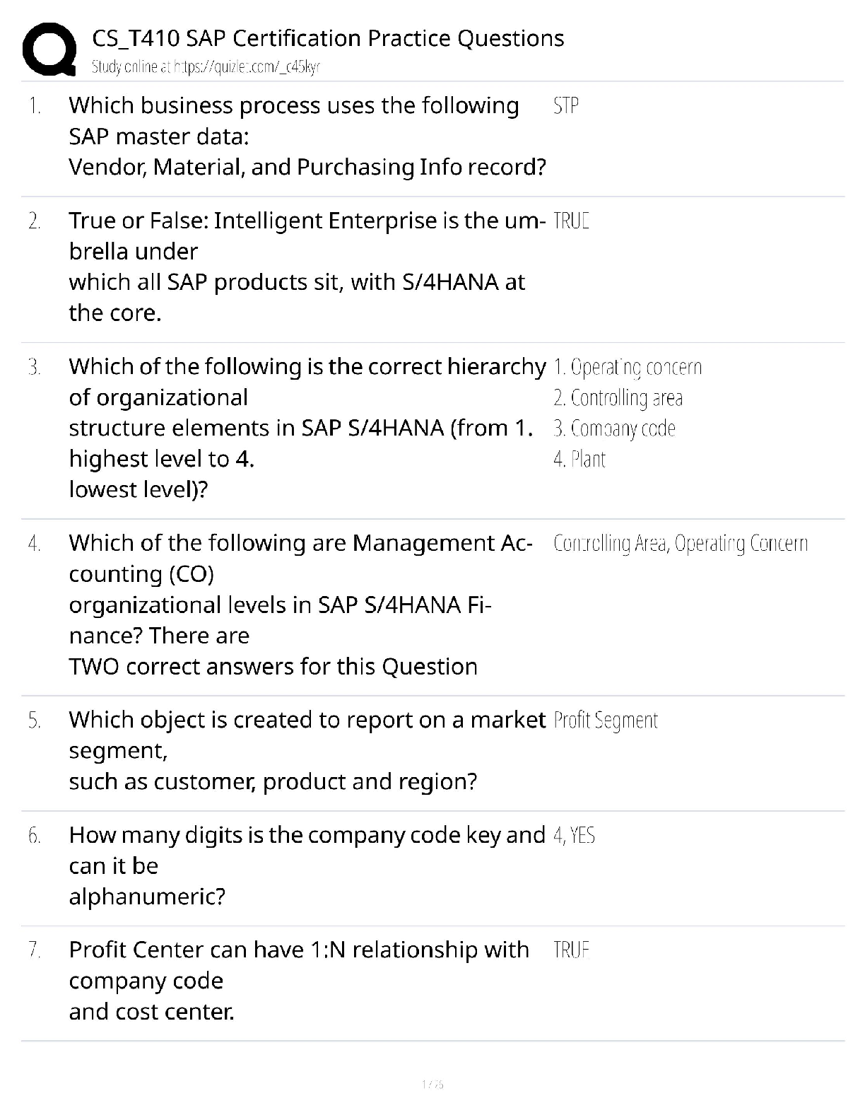 Information Technology > QUESTIONS & ANSWERS > SAP CS_T410 Certification Practice Questions / 2025 S4HANA Customer Service Exam / 300+ Real Test Bank / Score 80%+ Guaranteed (All)