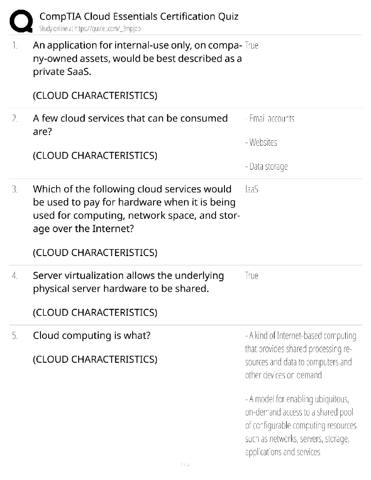 Information Technology > QUESTIONS & ANSWERS > CompTIA Cloud Essentials+ / Certification Quiz 2025 / New Version / Score 100% (All)