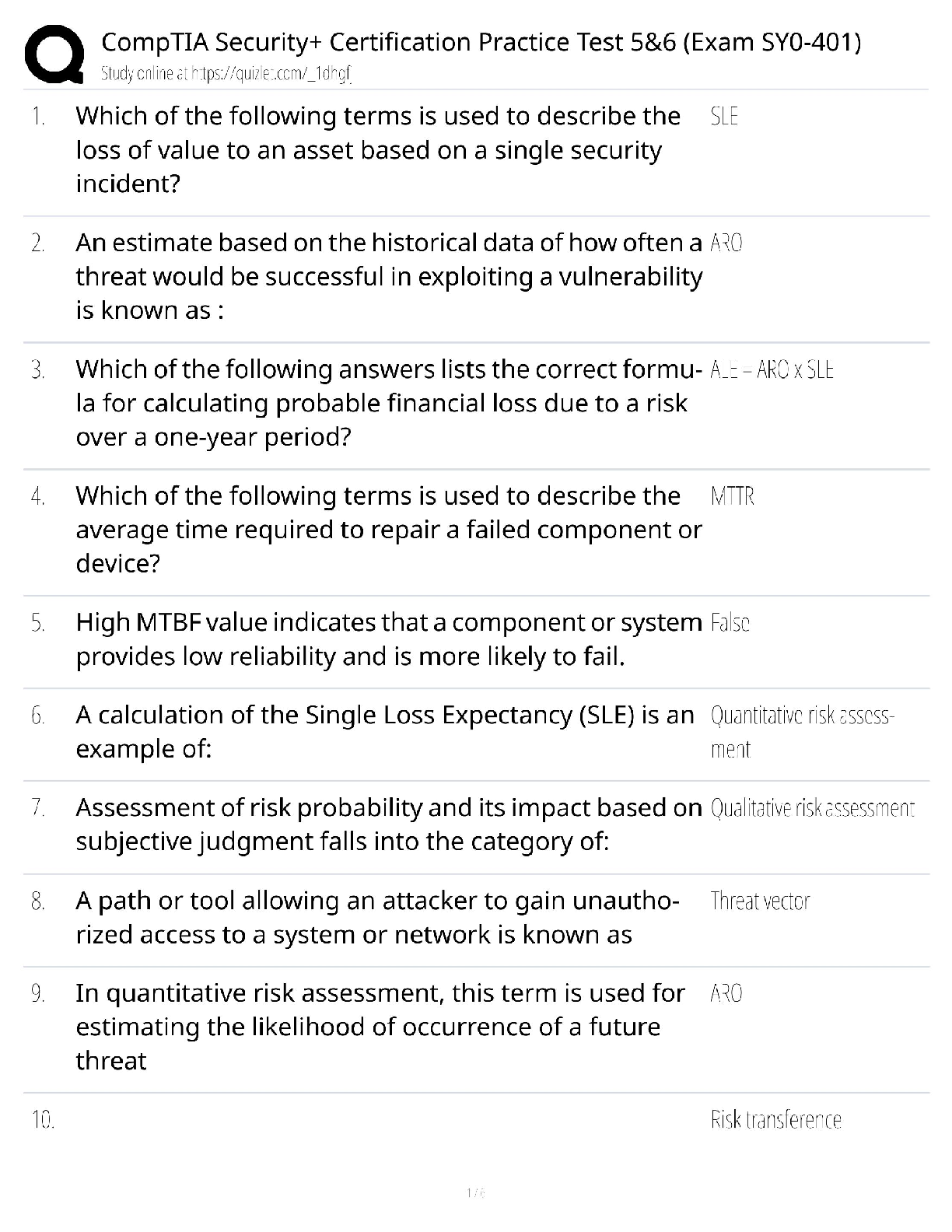 Information Technology > QUESTIONS & ANSWERS > CompTIA Security+ SY0-401 / Practice Tests 5 & 6 / 2025 Update & Score 100% (All)