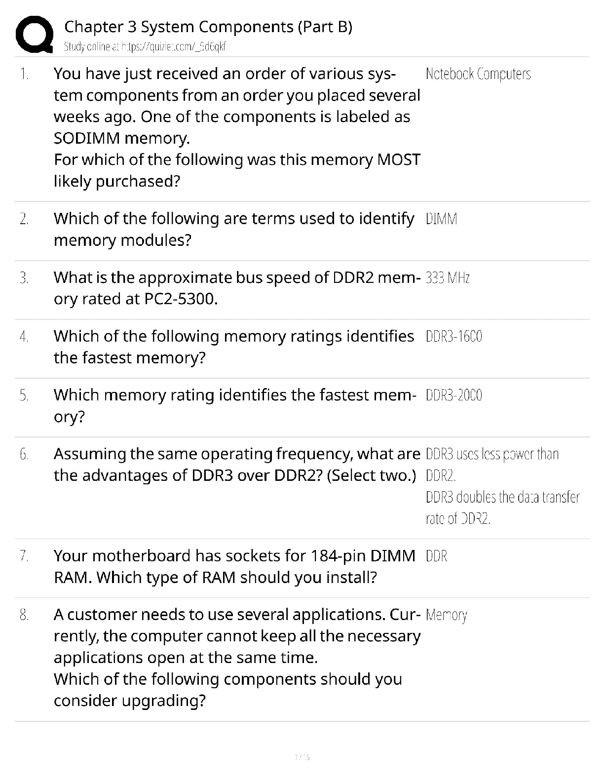 Information Technology > QUESTIONS & ANSWERS > Chapter 3 System Components Part B / 2025 Certification Exam / Score 100% Study Guide & Test Bank (All)