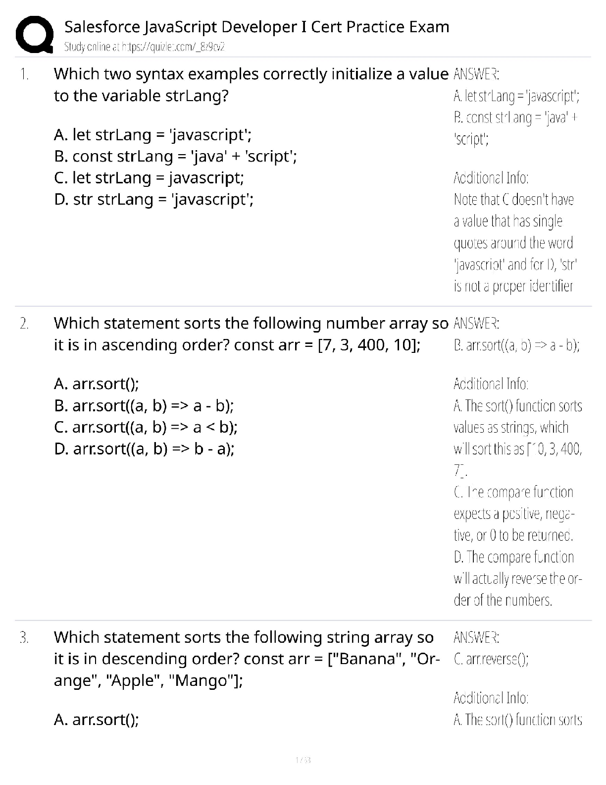 Information Technology > QUESTIONS & ANSWERS > Salesforce JavaScript Developer I Practice Exam Test Bank / PD1 Certification / 2025 Update / Score 100% (All)