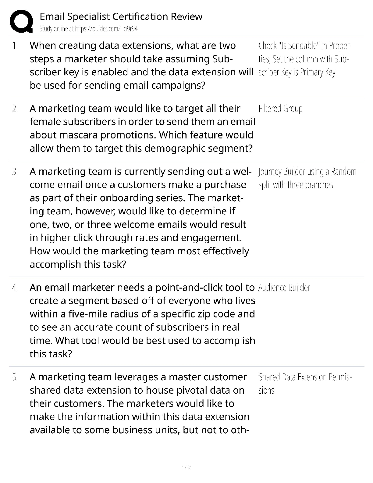 Information Technology > QUESTIONS & ANSWERS > Email Specialist Certification Review Test Bank / Digital Marketing Exam / 2025 Update / Score 100% (All)