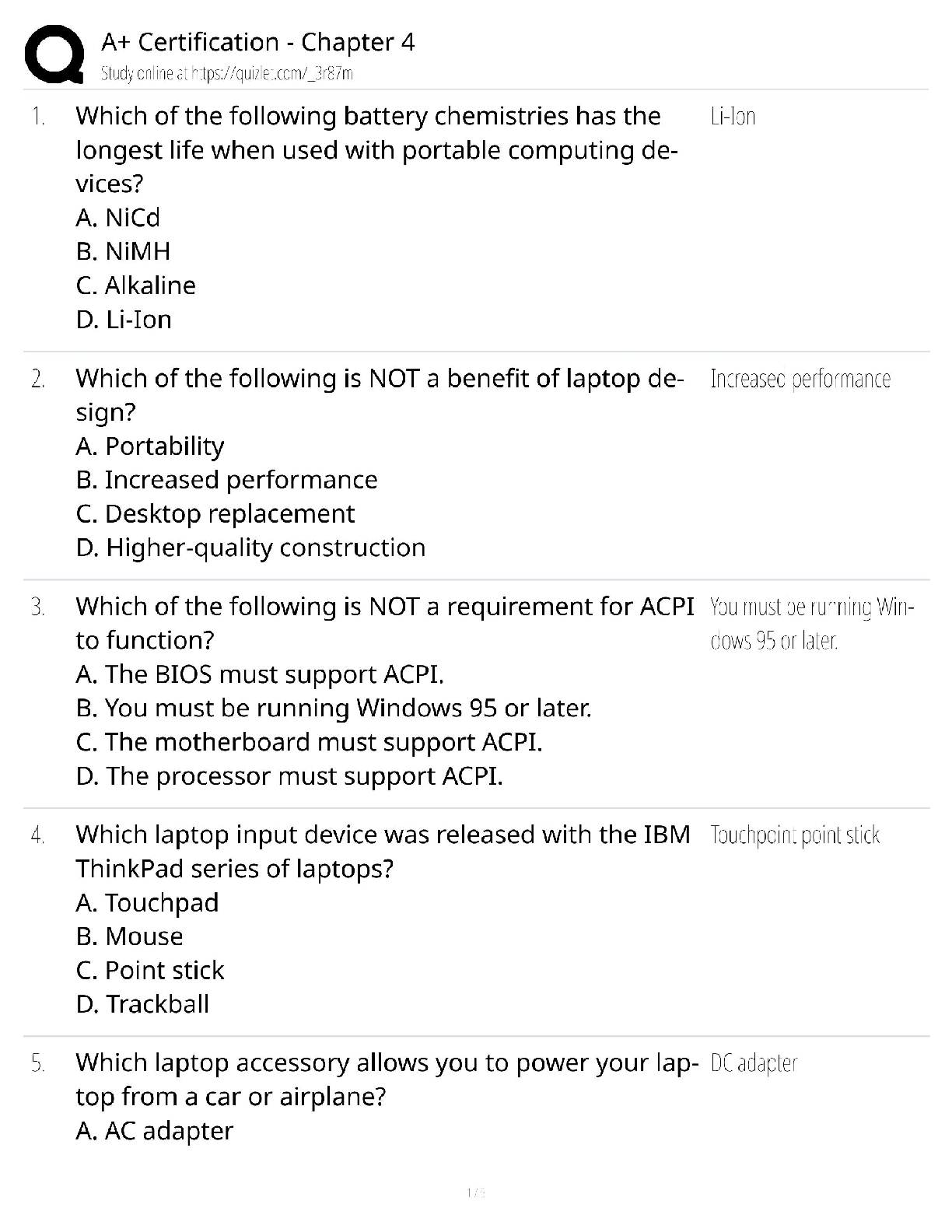 Information Technology > QUESTIONS and ANSWERS > CompTIA A+ Core 1 (220-1101) – Complete Study Guide with Verified Questions & Answers (All)
