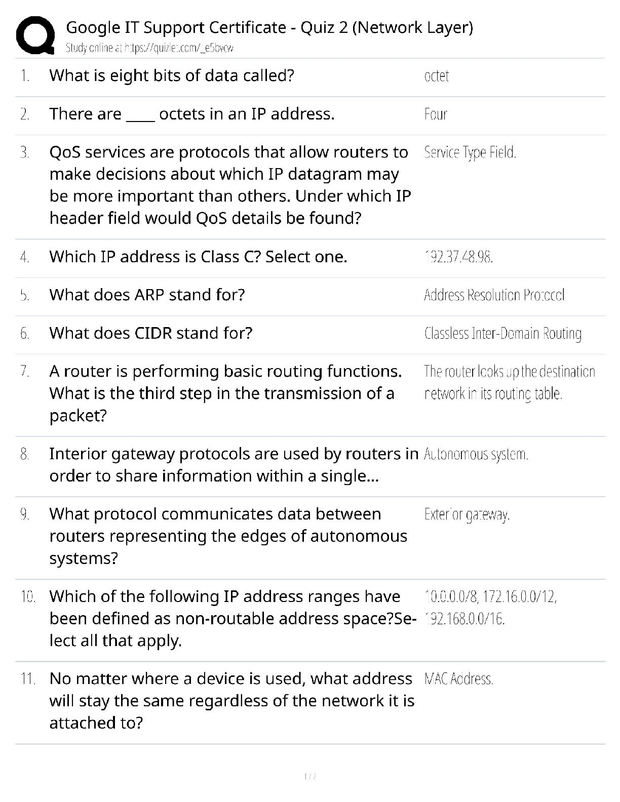 Information Technology > QUESTIONS & ANSWERS > Google IT Support Quiz 2 Test Bank / Network Layer Exam / 2025 Update / Score 100% (All)