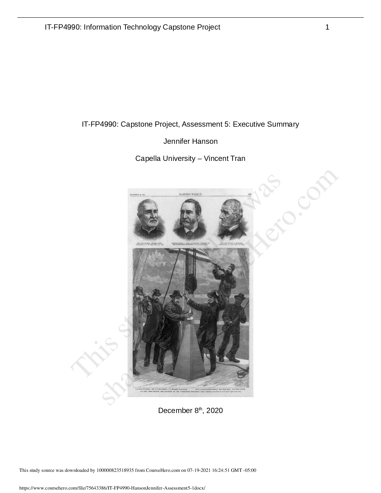 Information Technology > STUDY GUIDE > Capella University FP 4990 IT-FP4990 Assessment5-1 Capstone Project, Assessment 5: Executive Summary (All)
