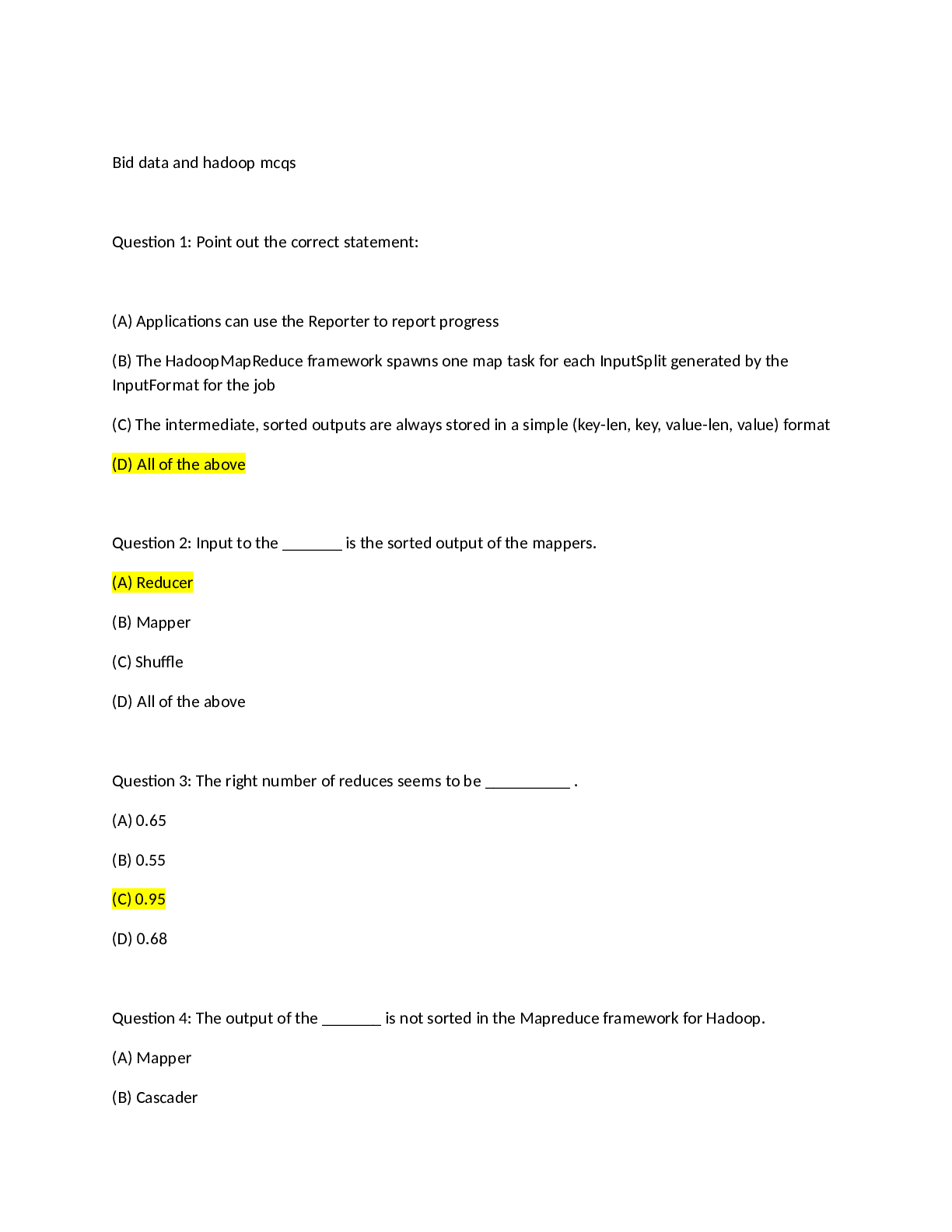 Information Technology > QUESTIONS & ANSWERS > Bid data and hadoop mcqs (All)