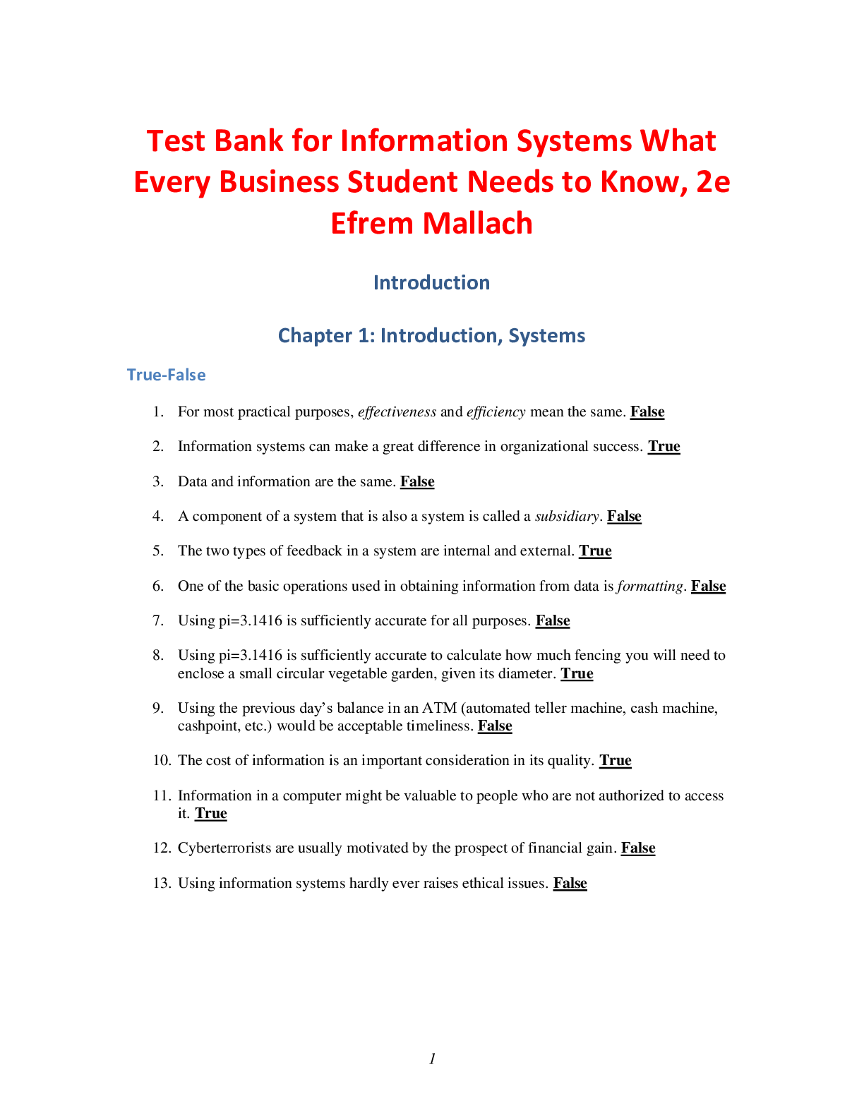 Information Technology > TEST BANKS > Information Systems What Every Business Student Needs to Know, 2e Efrem Mallach (Test Bank) (All)